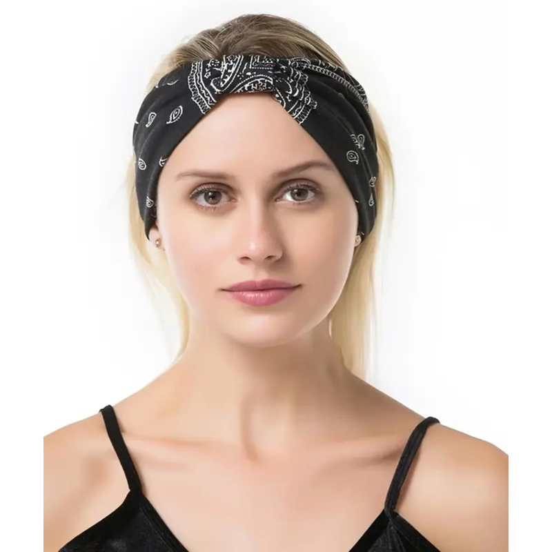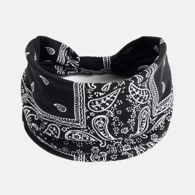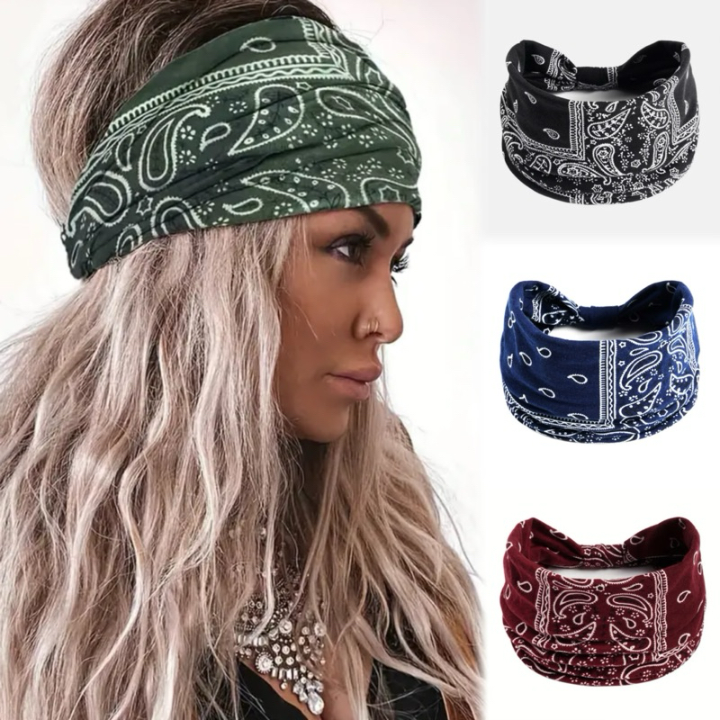 Faixa de Cabeça Larga Elástica com Estampa Paisley Boho Vintage feminino- Absorvente de Suor Elástica para Fitness Yoga