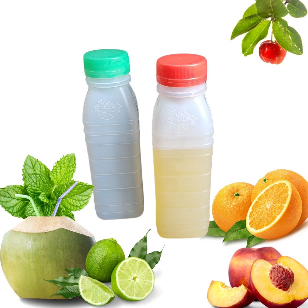 25 GARRAFAS PLASTICAS 200ML TAMPA LACRE QUADRADA SUCO, AGUA DE COCO, DELIVERY