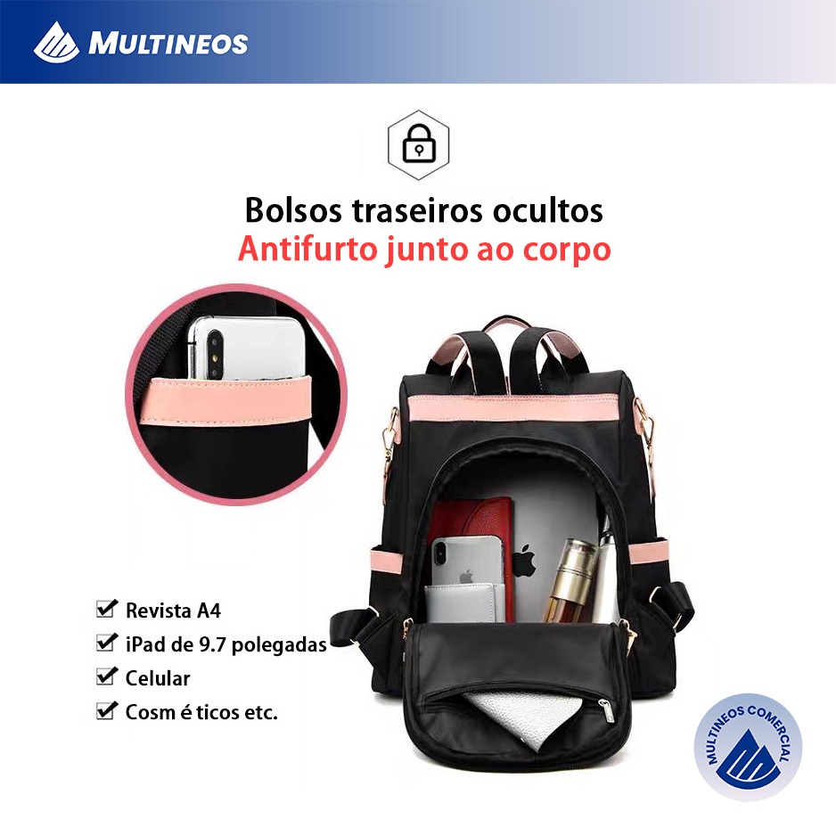 Mochila Escolar De Capacidade Para Mulheres Estudantes Nylon impermeável