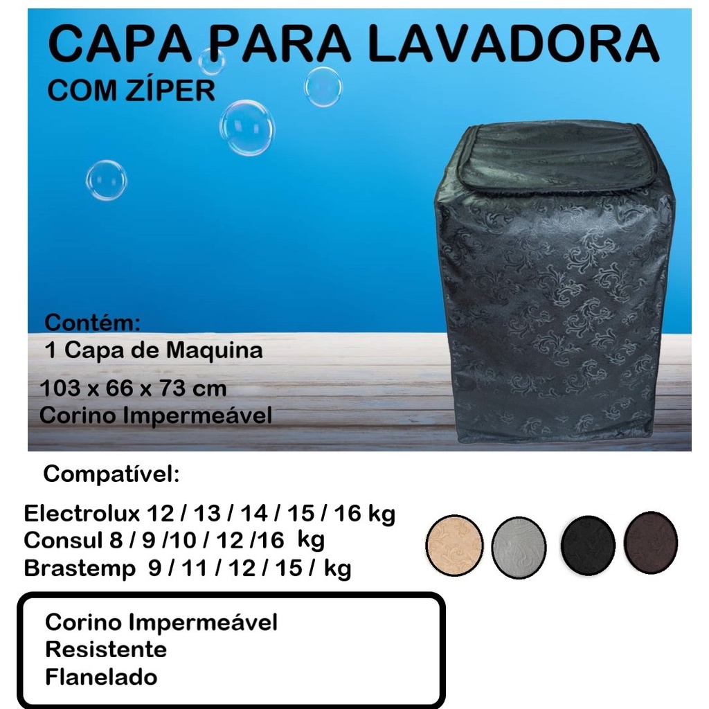 Capa Maquina Consul 9 kilos Corino Grosso com Zíper