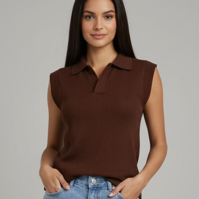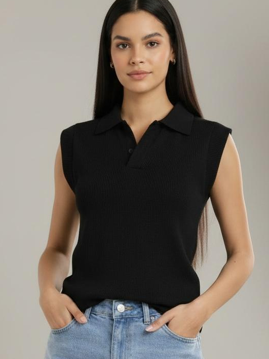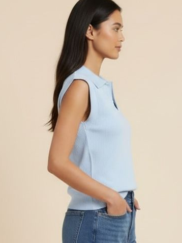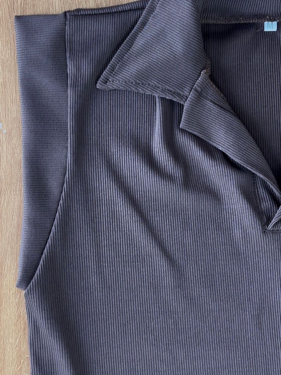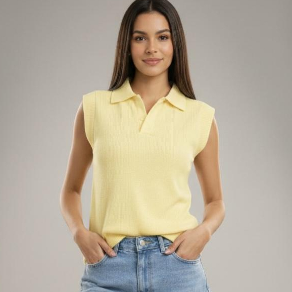 Blusa Feminina Polo Canelada Sem Manga, Regata, Gola, Ribana. 🔥