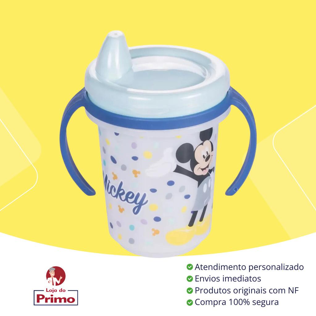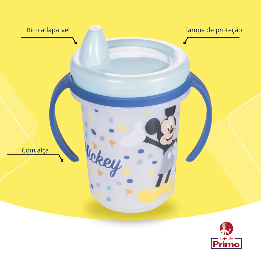Caneca Copo Com Alça Infantil Mickey Alça Removível de Transição Treinamento 330ml Plasútil