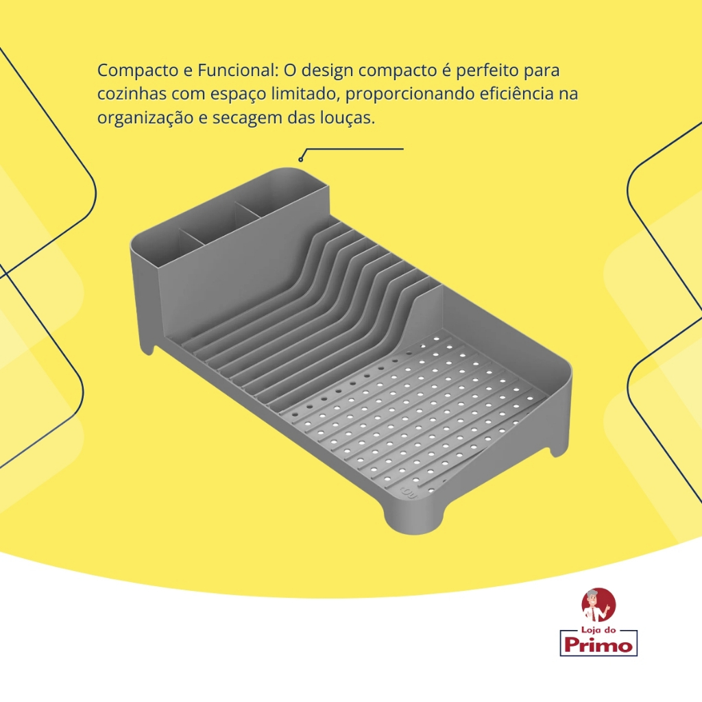 Escorredor Organizador de Louças 8 Pratos E Talheres Trium Compact Cinza Chumbo OU