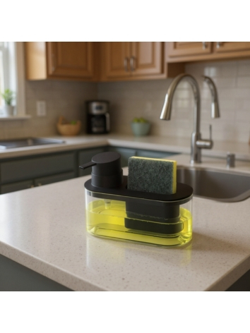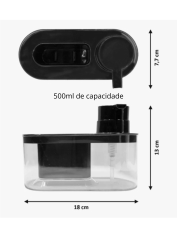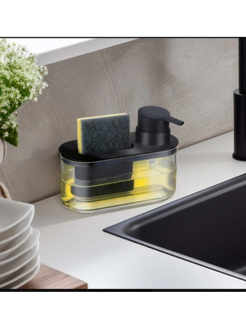 Porta Detergente Com Suporte Para Bucha 500ml Preto Dispenser De Pia Prático Arthi
