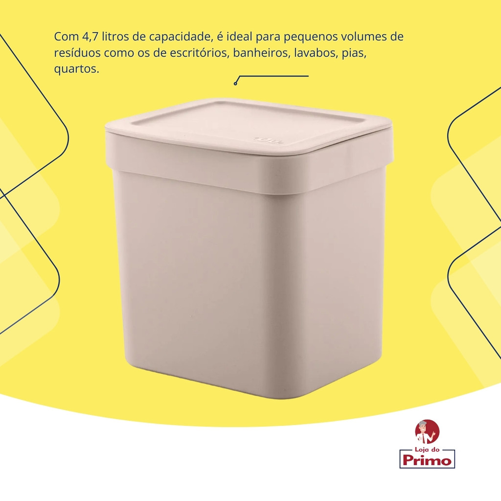 Lixeira 4,7 Litros Banheiro Pia Cozinha Escritório Lavabo Esconde Saco Linha Trium Bege OU