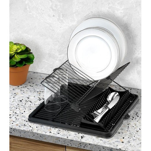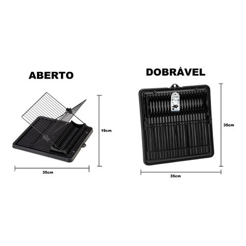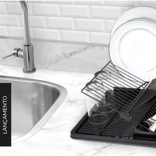Escorredor De Louças Flex Articulado 16 Pratos Talher Copo Preto Arthi