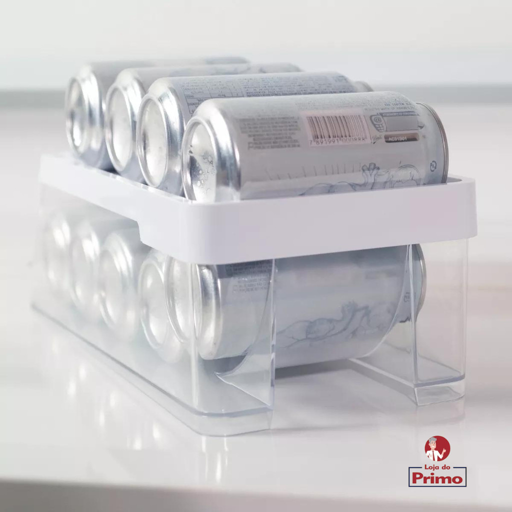 Organizador de Latas Geladeira 9 Unidades Refrigerante Cerveja Suco Água Em Acrílico Arthi