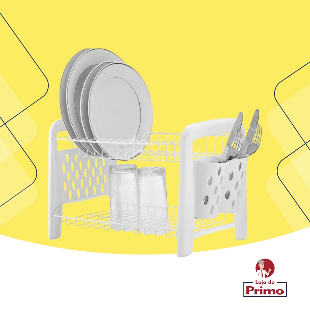 Escorredor De Louça Duplo Porta Talheres Desmontável Branco Pia Cozinha Compacta Arthi