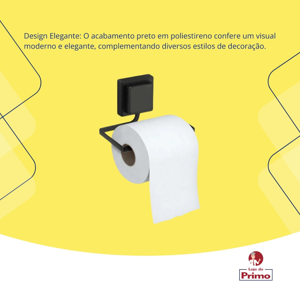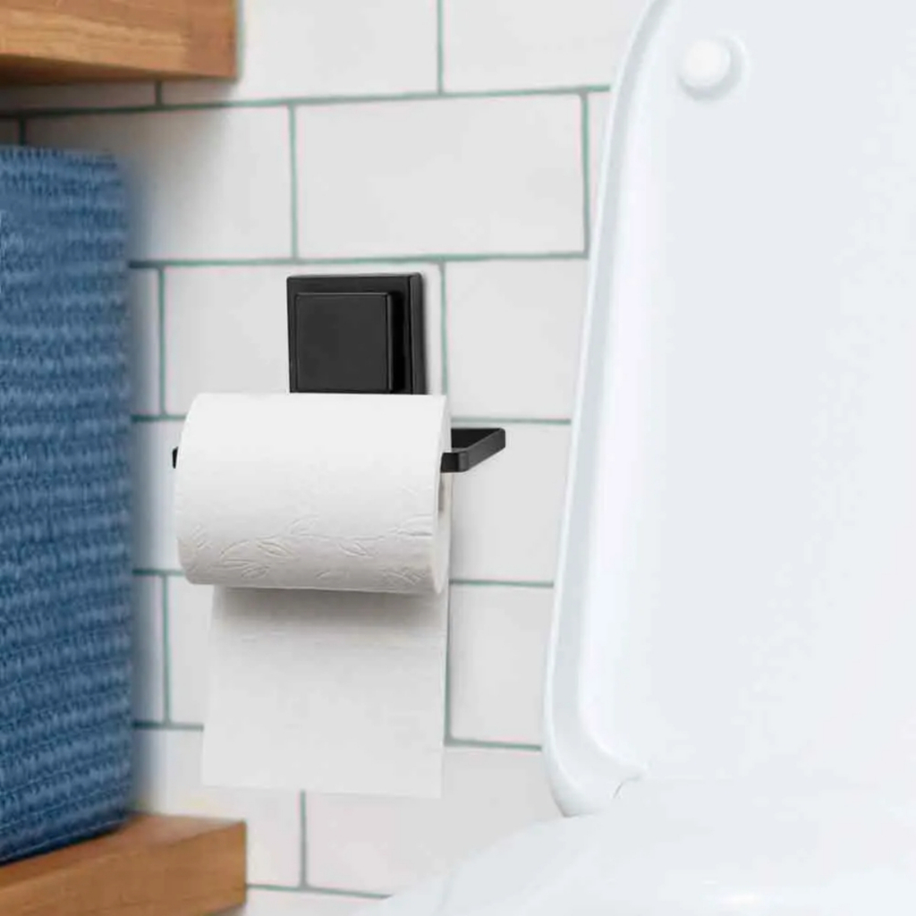 Suporte Porta Papel Higiénico Papeleira Parede Fixação Sem Furos Dupla Face 3M Black Preto Arthi