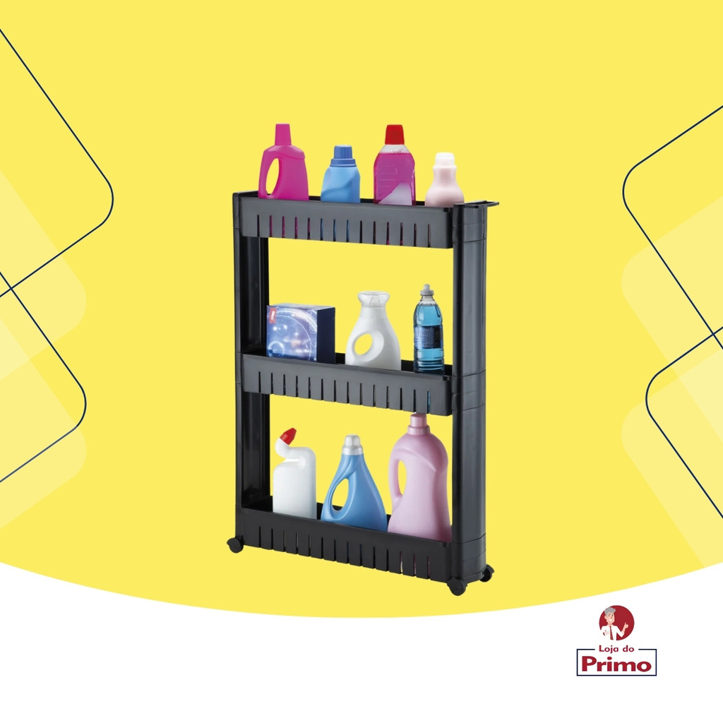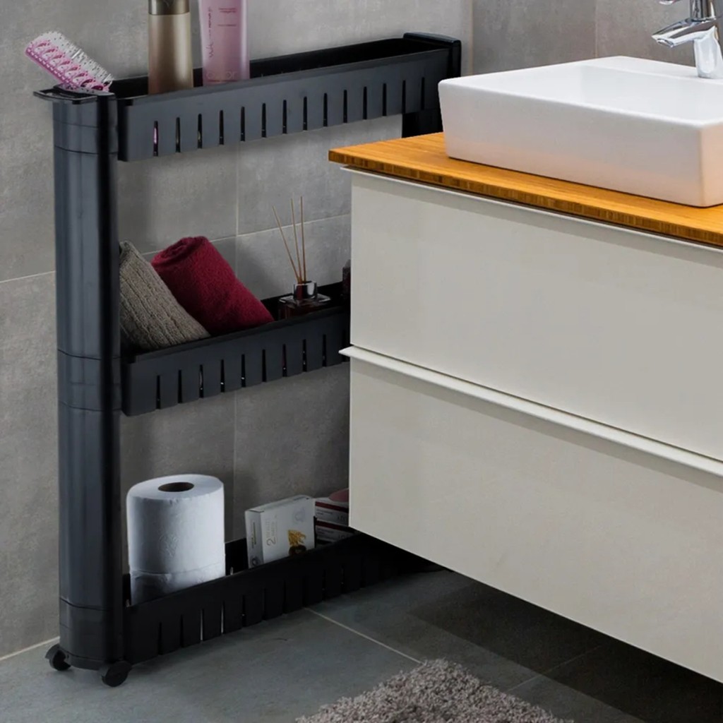 Carrinho Prateleira Multiuso com Rodízios 3 Andares Organização Cozinha Banheiro Preto Arthi