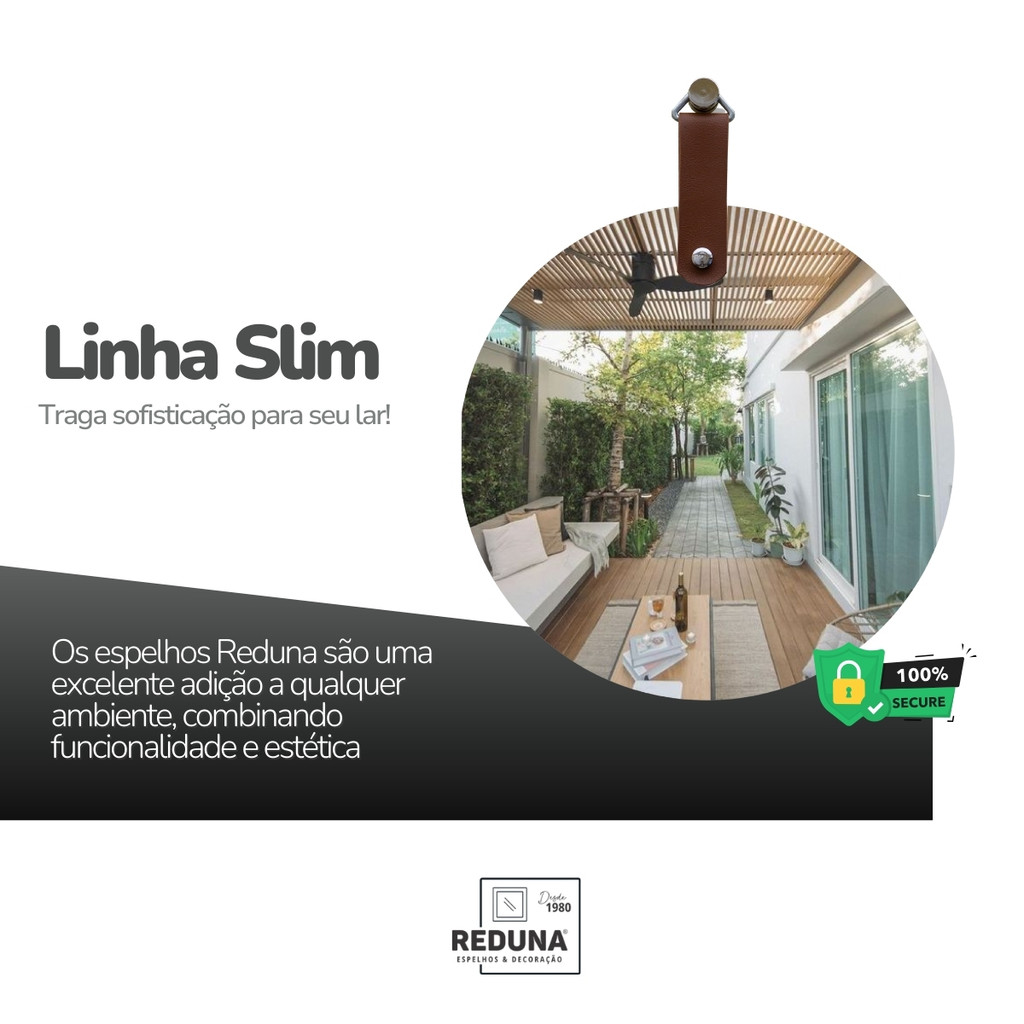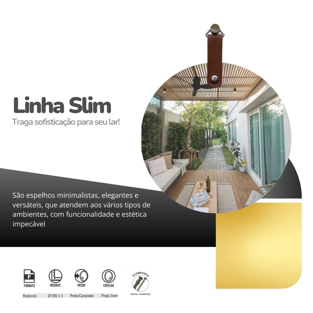 Espelho Redondo Slim Decorativo Suspenso Alça Caramelo 55cm Banheiro Sala Alta Qualidade Reduna