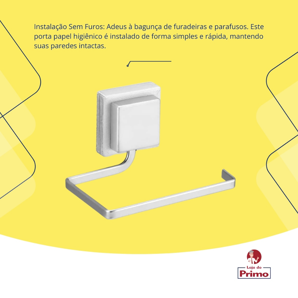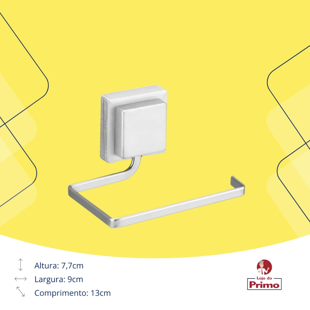 Suporte Porta Papel Higiênico Parede Cromo Fosco Adesivo 3M Sem Furo Arthi