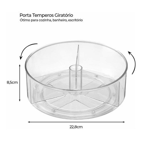Porta Tempero Giratório Alto Com 3 Divisórias Organizador de Bancada Cozinha Prático Arthi