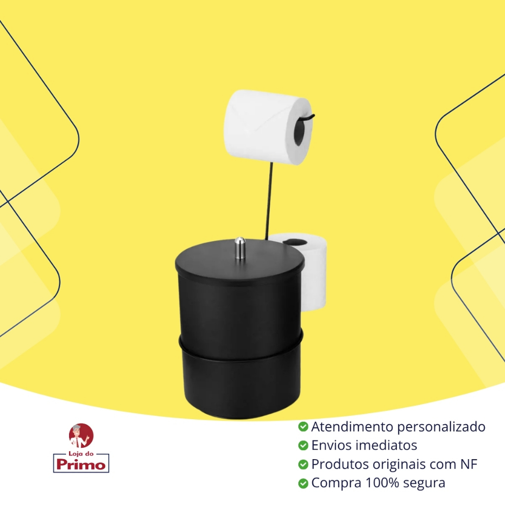 Suporte De Chão Para Papel Higiênico Com Lixeira Embutida Preta Arthi