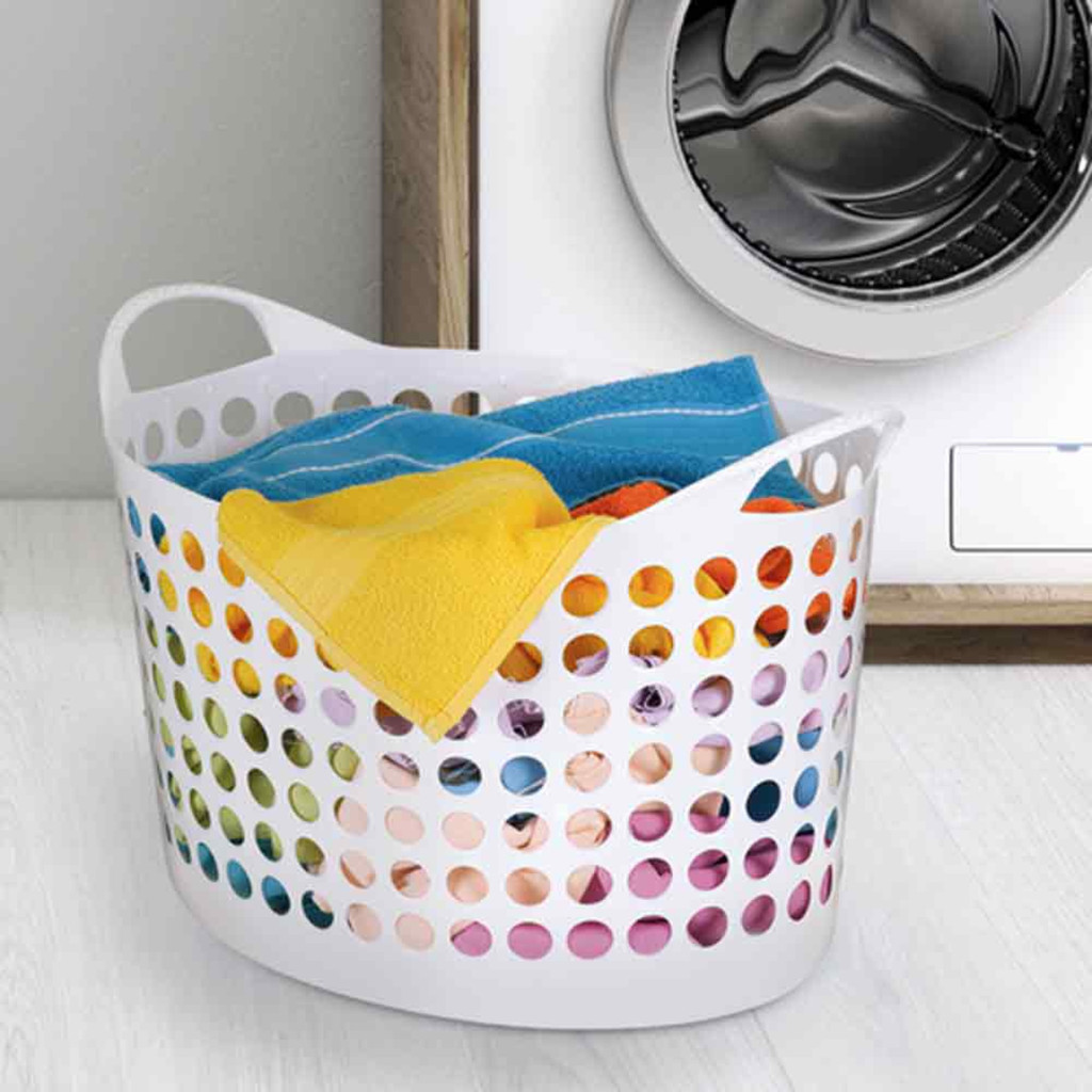 Cesto De Roupa Suja Oval Flexível Com Alça 35 Litros Branco Para Lavanderia E Organização Arthi