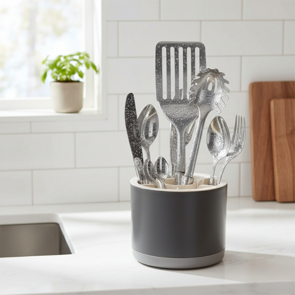 Porta Talheres Redondo Com Divisórias Off White Arthi