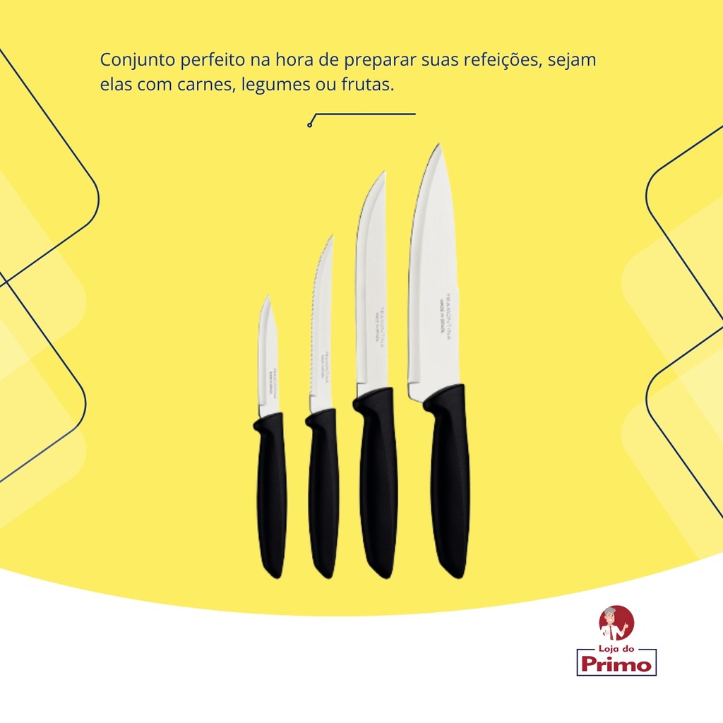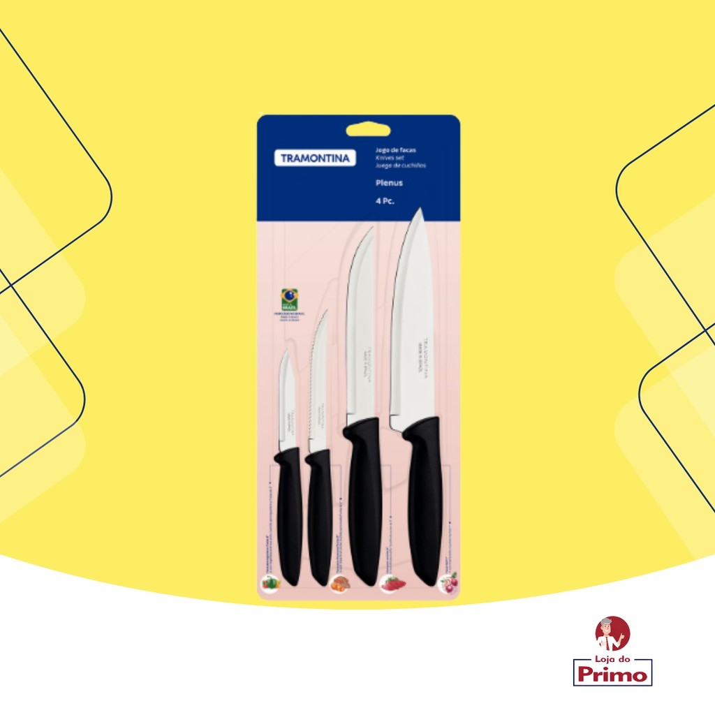Jogo Facas Tramontina Plenus 4 Peças Inox Preto Cozinha Polipropileno Original