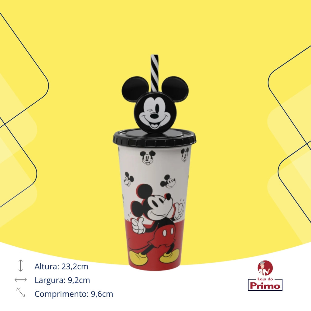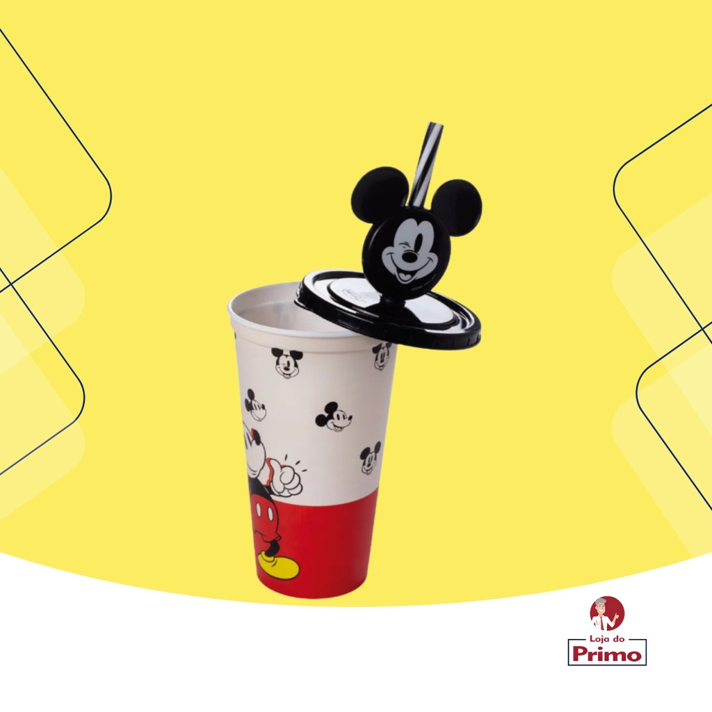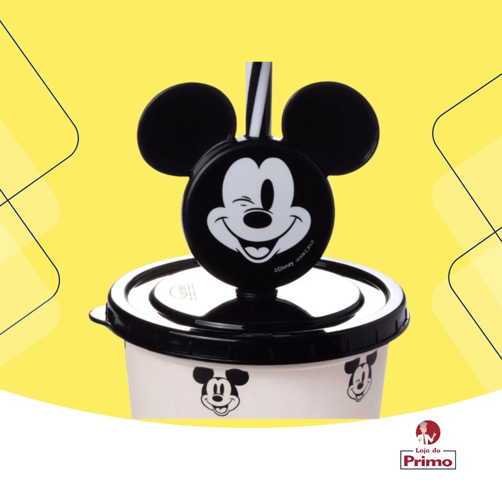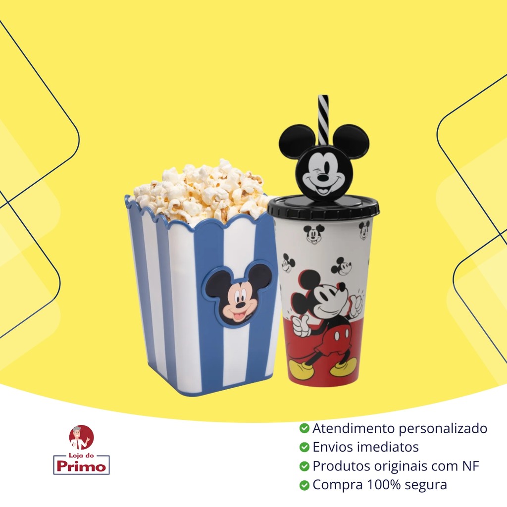 Kit Pipoca Cinema Mickey Balde Pipoca + Copo Refrigerante Suco Água 500ml Plasútil