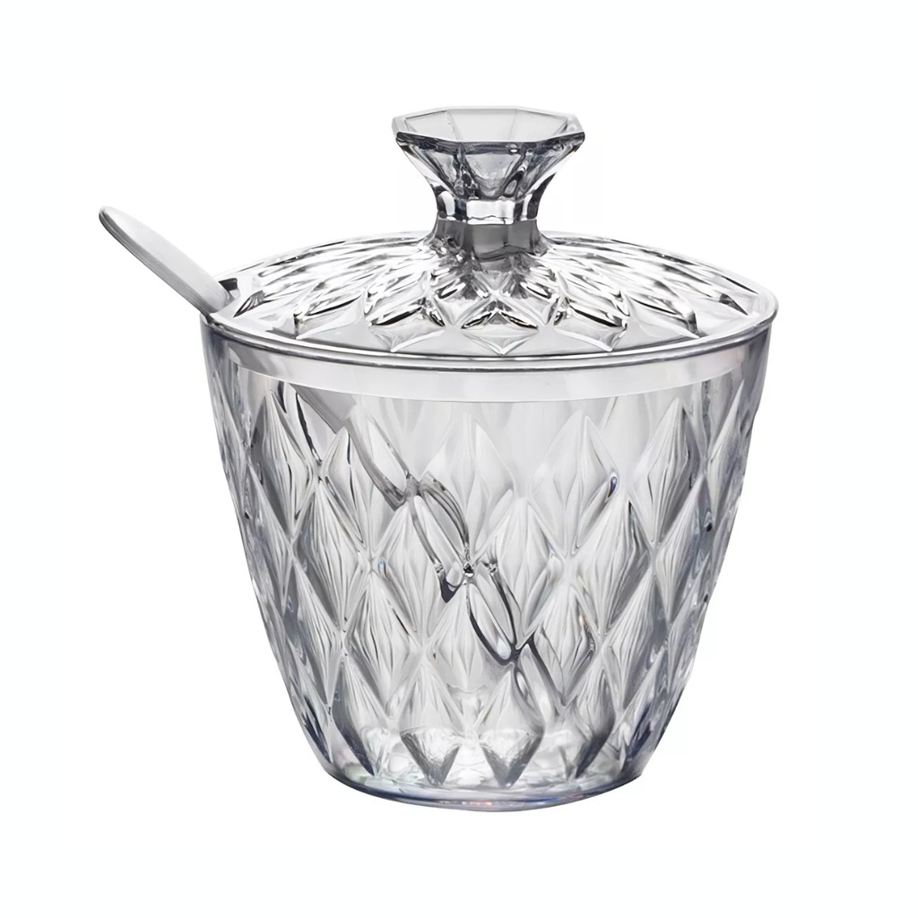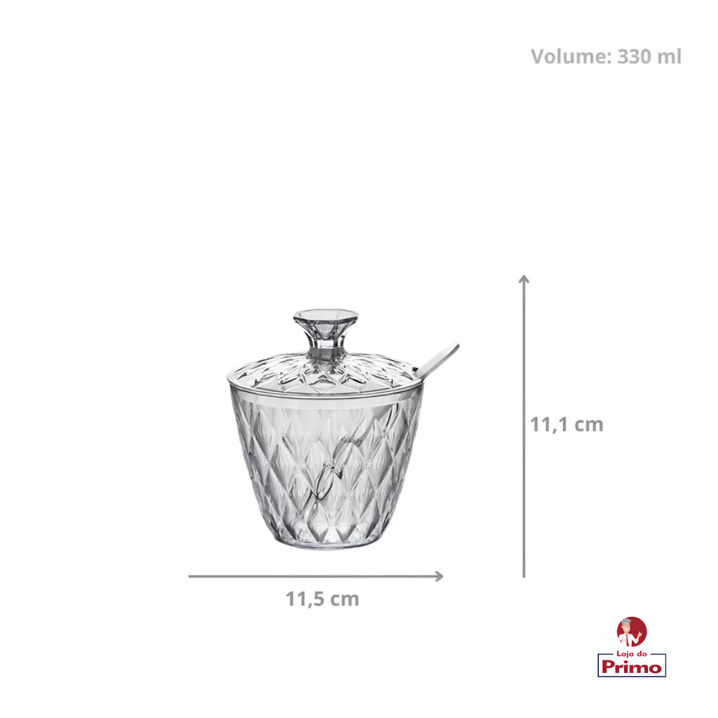 Açúcareiro De Plástico Com Tampa E Colher Glamour Porta Açúcar Plasutil