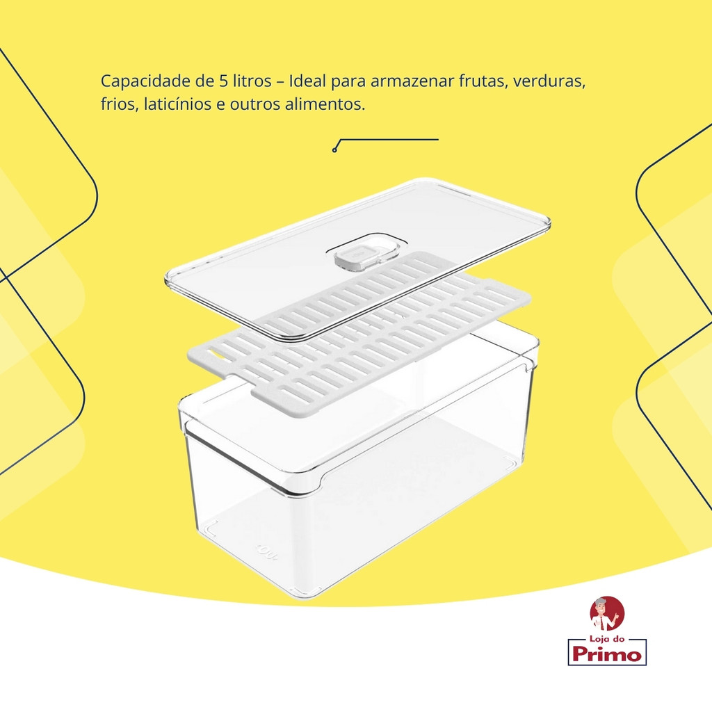 Organizador de Geladeira em Acrílico com Tampa 5 Litros Clear Fresh OU