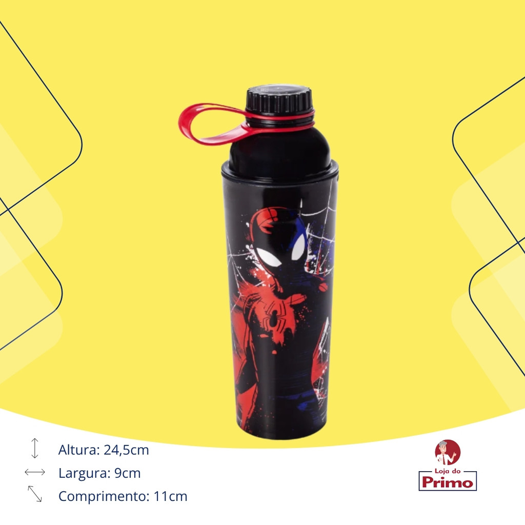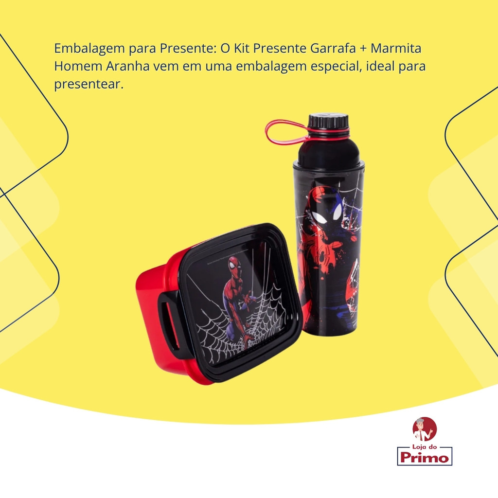 Kit Marmita 850ml e Garrafa 660ml Infantil Homem Aranha Lancheira Plasútil