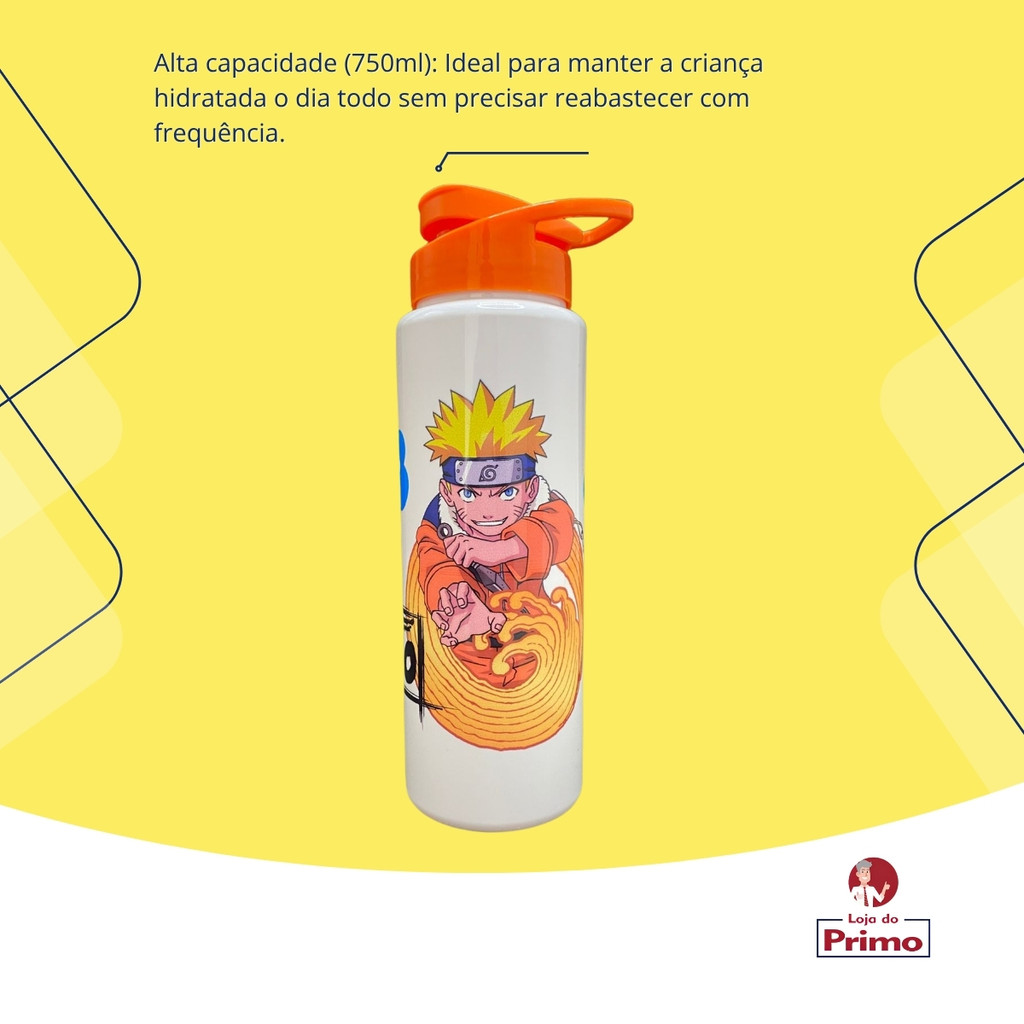 Garrafa Garrafinha de Água Infantil Squeeze Naruto Uzumaki 750ml Branca Bandeirante