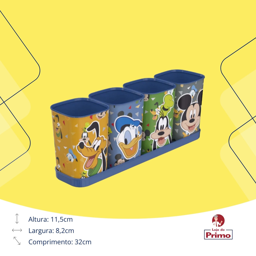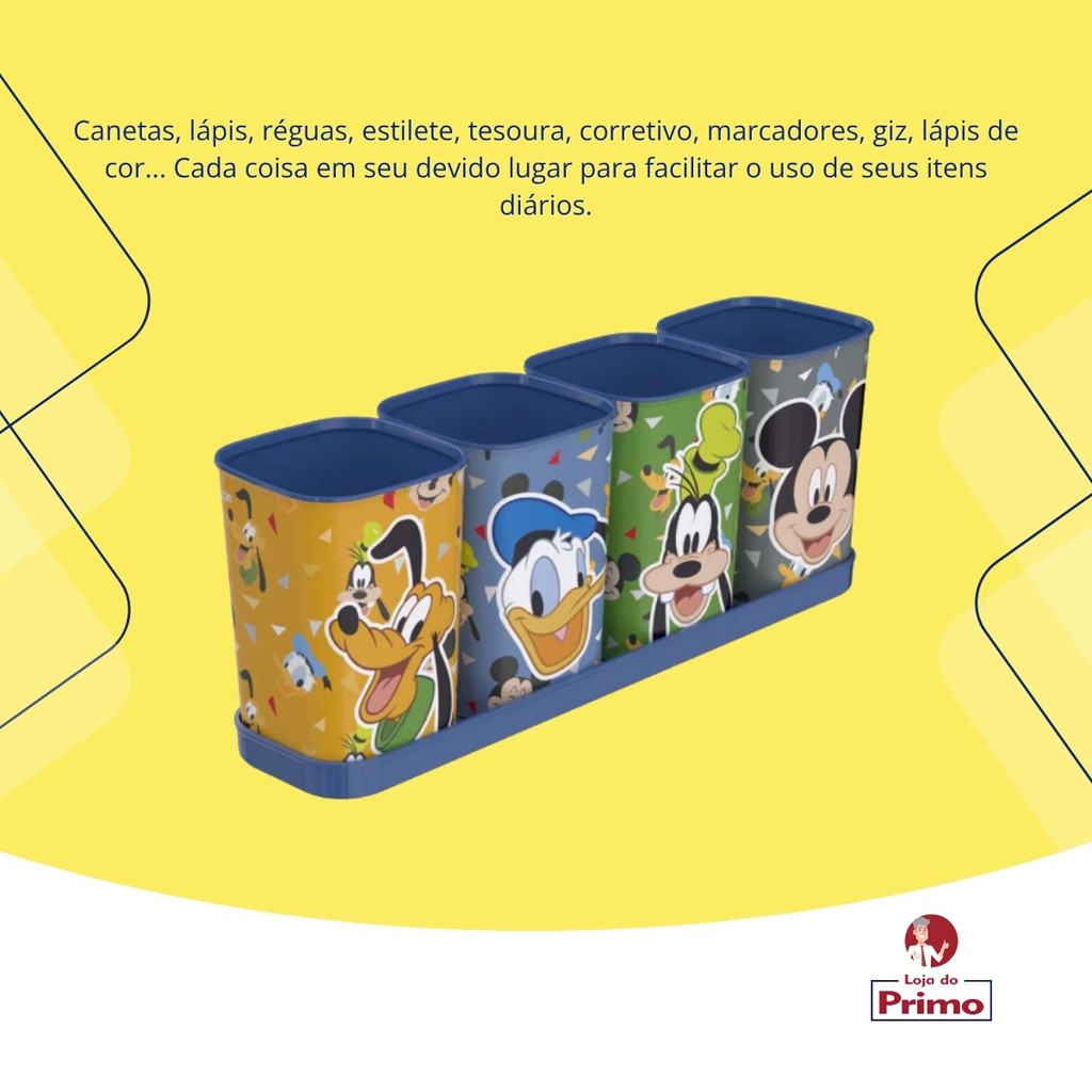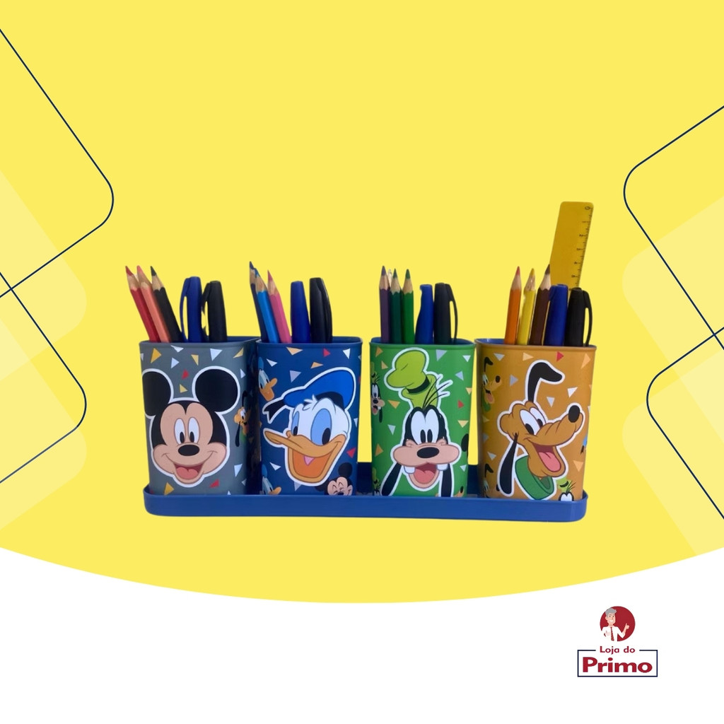 Organizador De Mesa Mickey E Amigos Plasútil 5 Peças Porta Caneta Lápis Com Bandeja Infantil