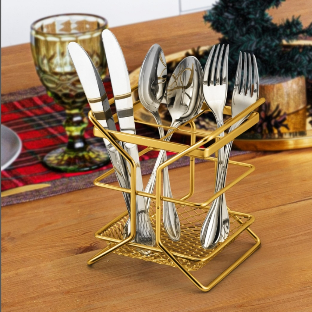 Porta Talheres Escorredor De Cozinha Bancada Aramado com Divisórias Luxo Dourado Gold Arthi