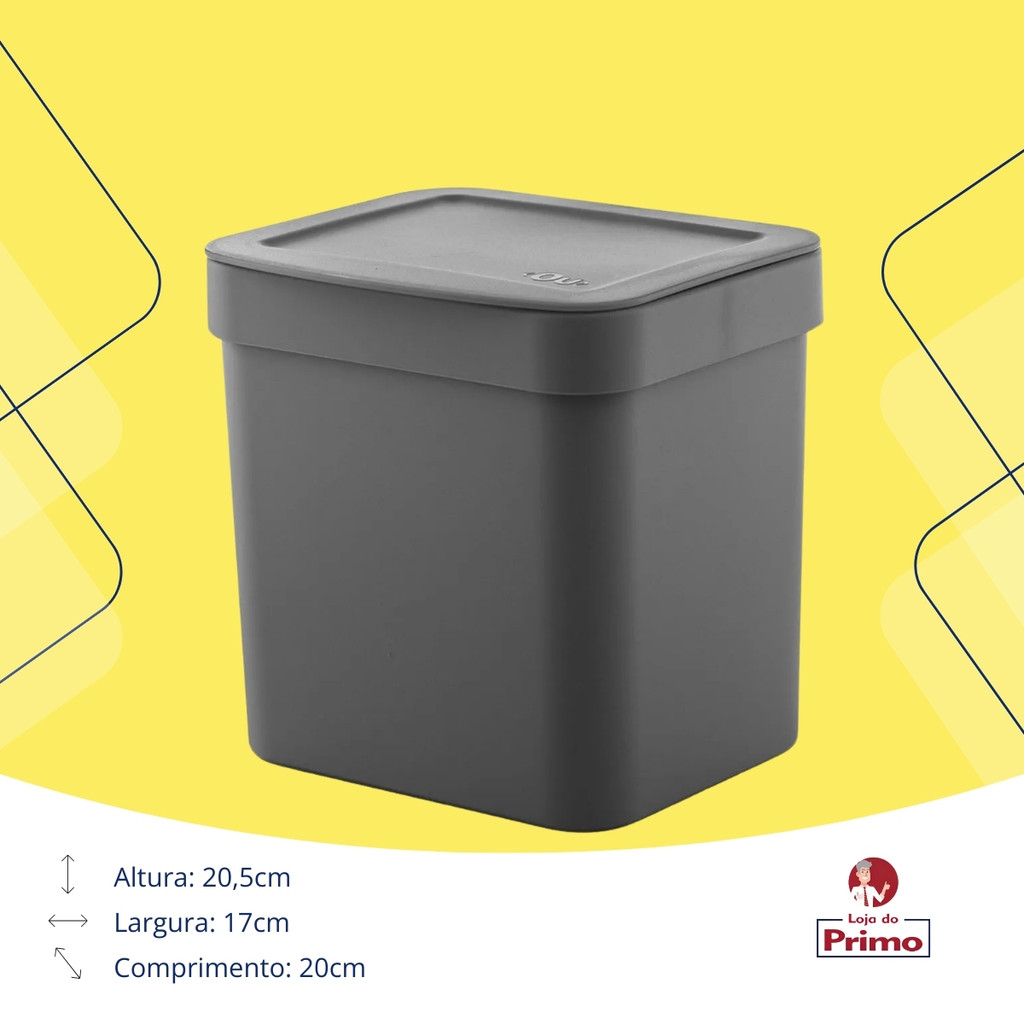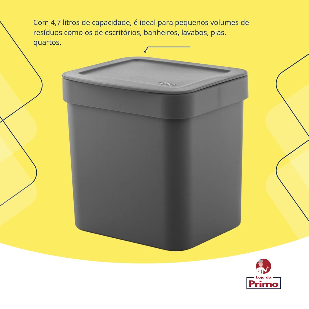Lixeira 4,7 Litros Banheiro Pia Cozinha Escritório Lavabo Esconde Saco Trium Cinza Chumbo OU