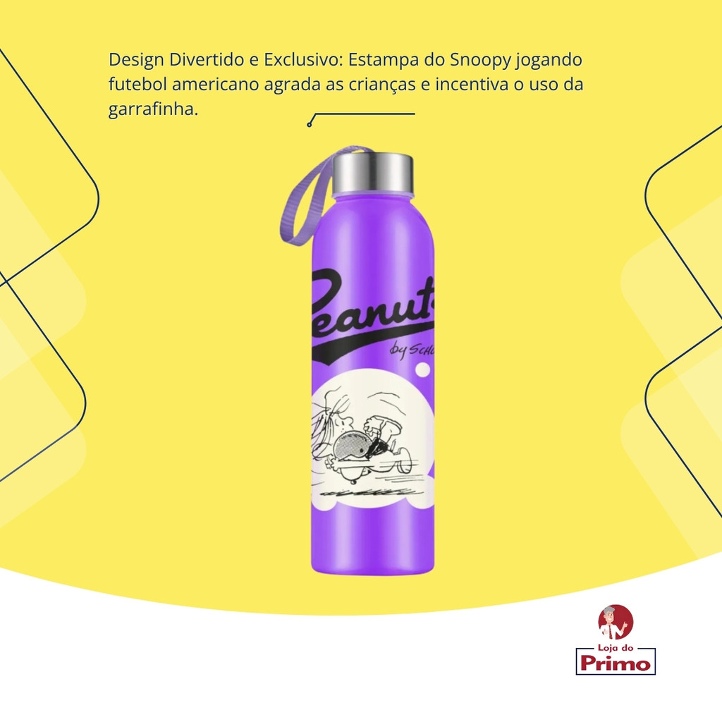 Garrafa Garrafinha de Água Infantil Squeeze Snoopy Futebol Americano 800ml Roxa Bandeirante
