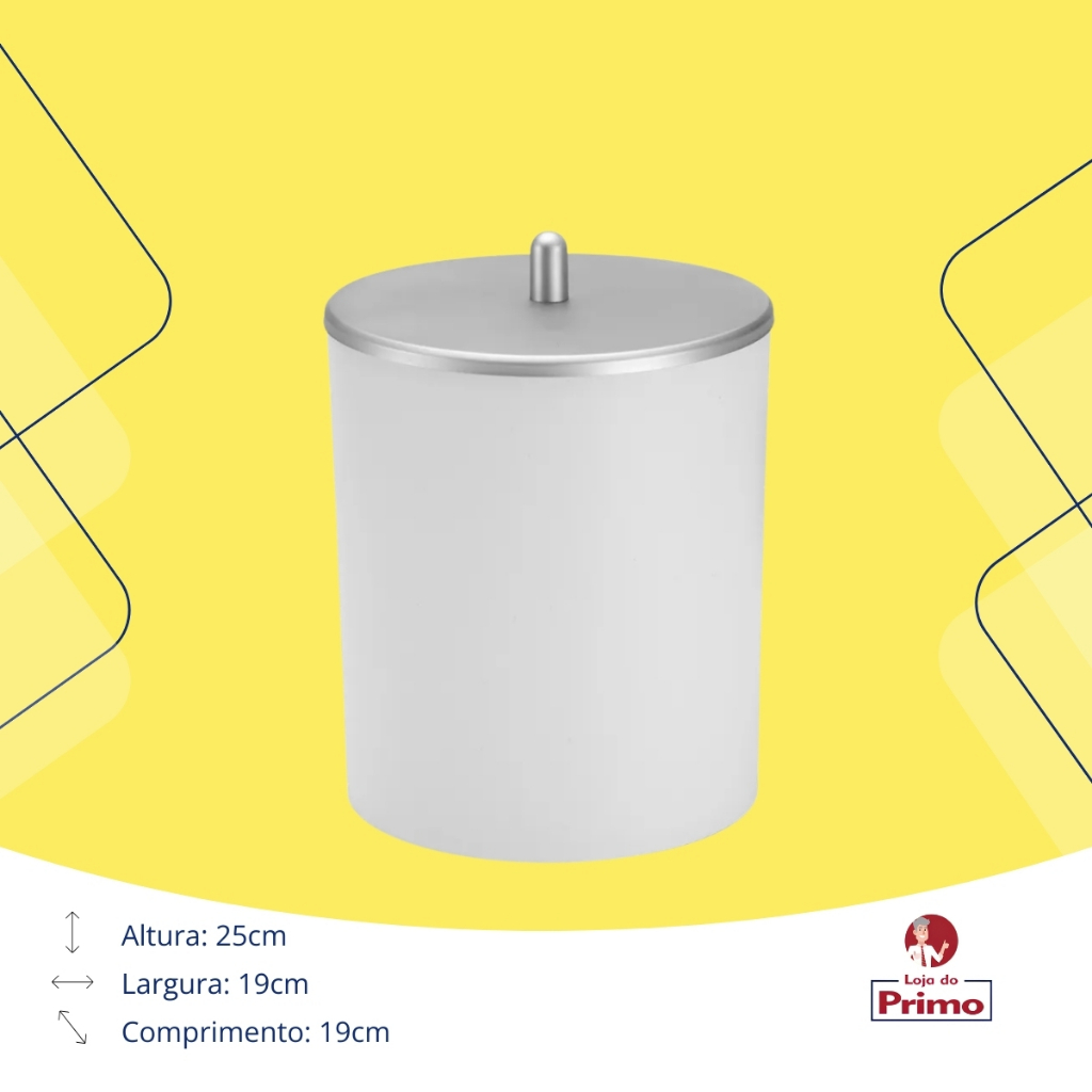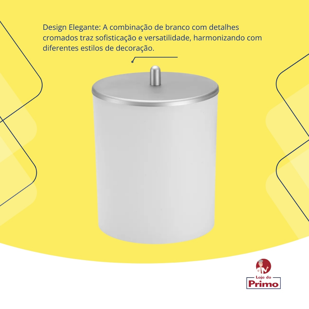 Lixeira 5 Litros Banheiro Pia Cozinha Escritório Lavabo Linha Conceito Branco com Tampa Prata ARTHI