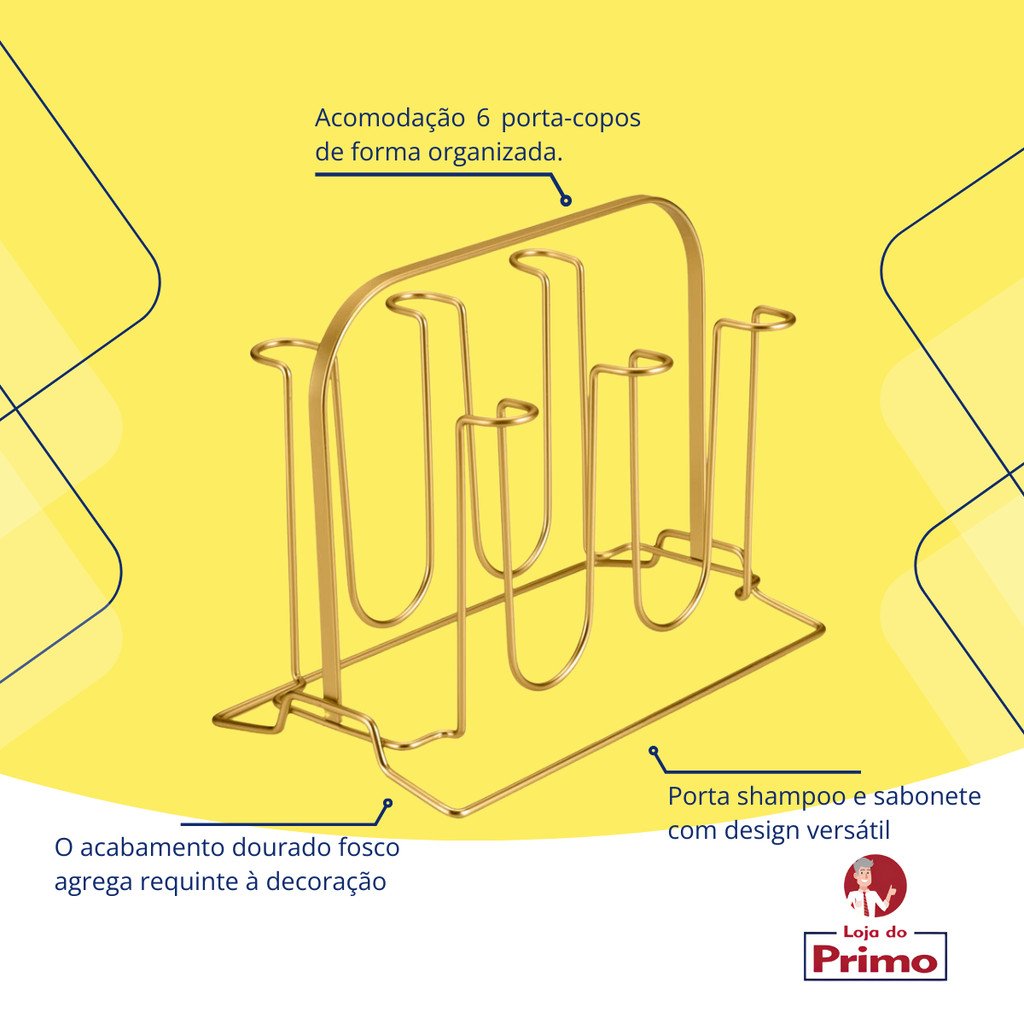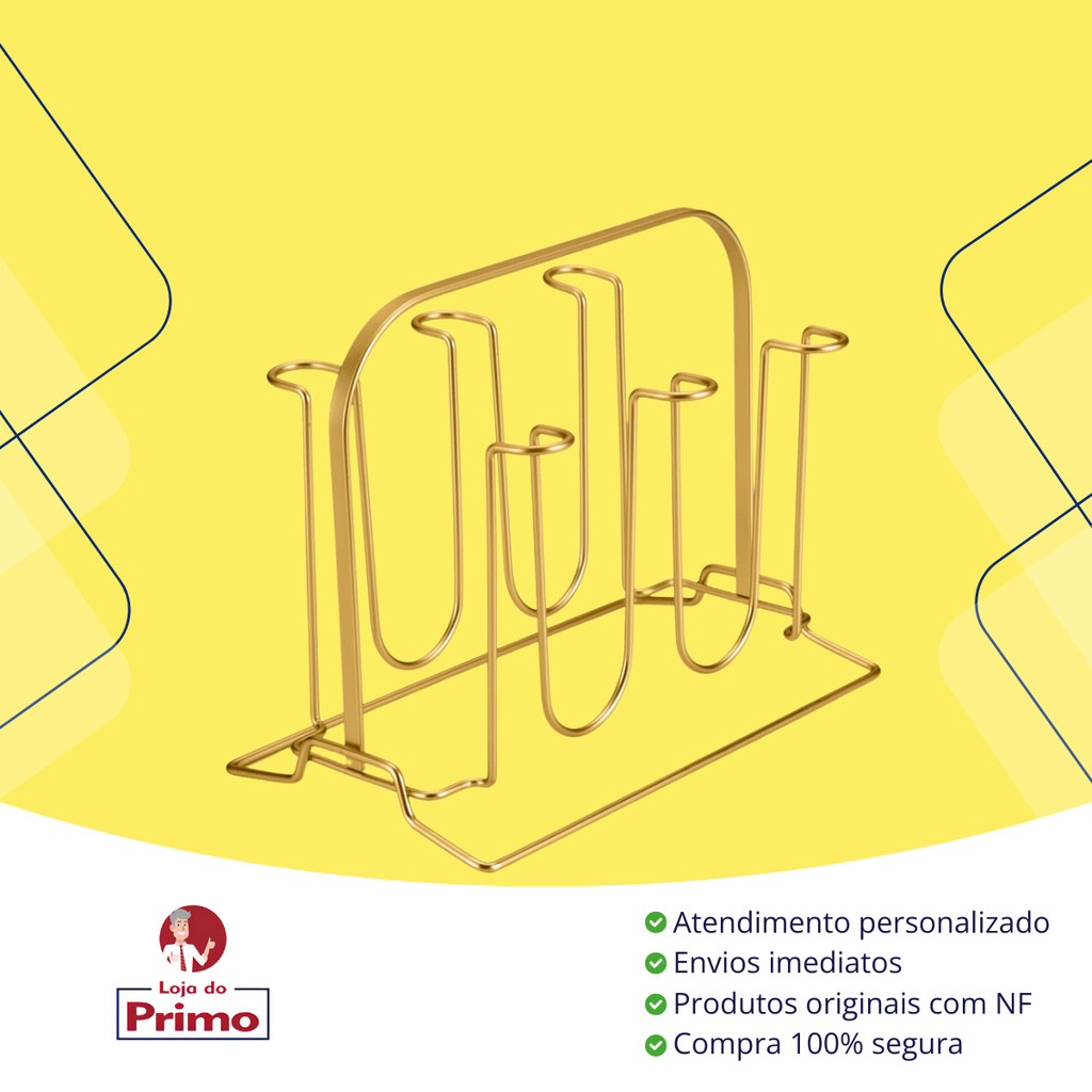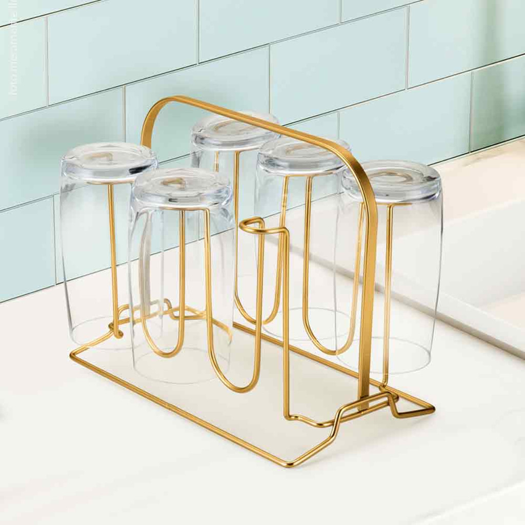 Porta Copos Suporte Para 6 Unidades Cozinha Mesa Cor Dourado Fosco Arthi