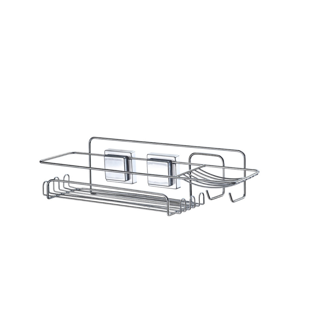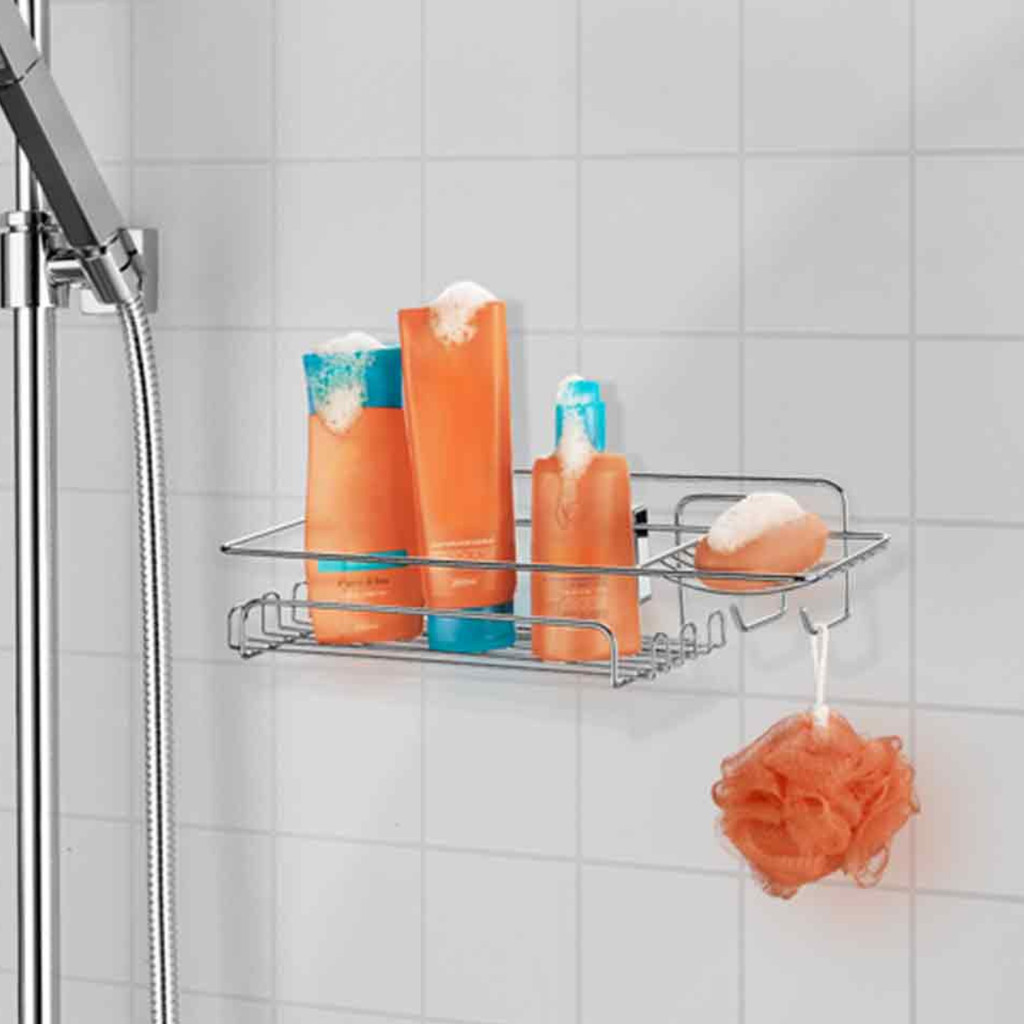 Suporte Banheiro Cantoneira Sem Furo Porta Shampoo Sabonete Arthi Aramado Parede Ventosa Cromado