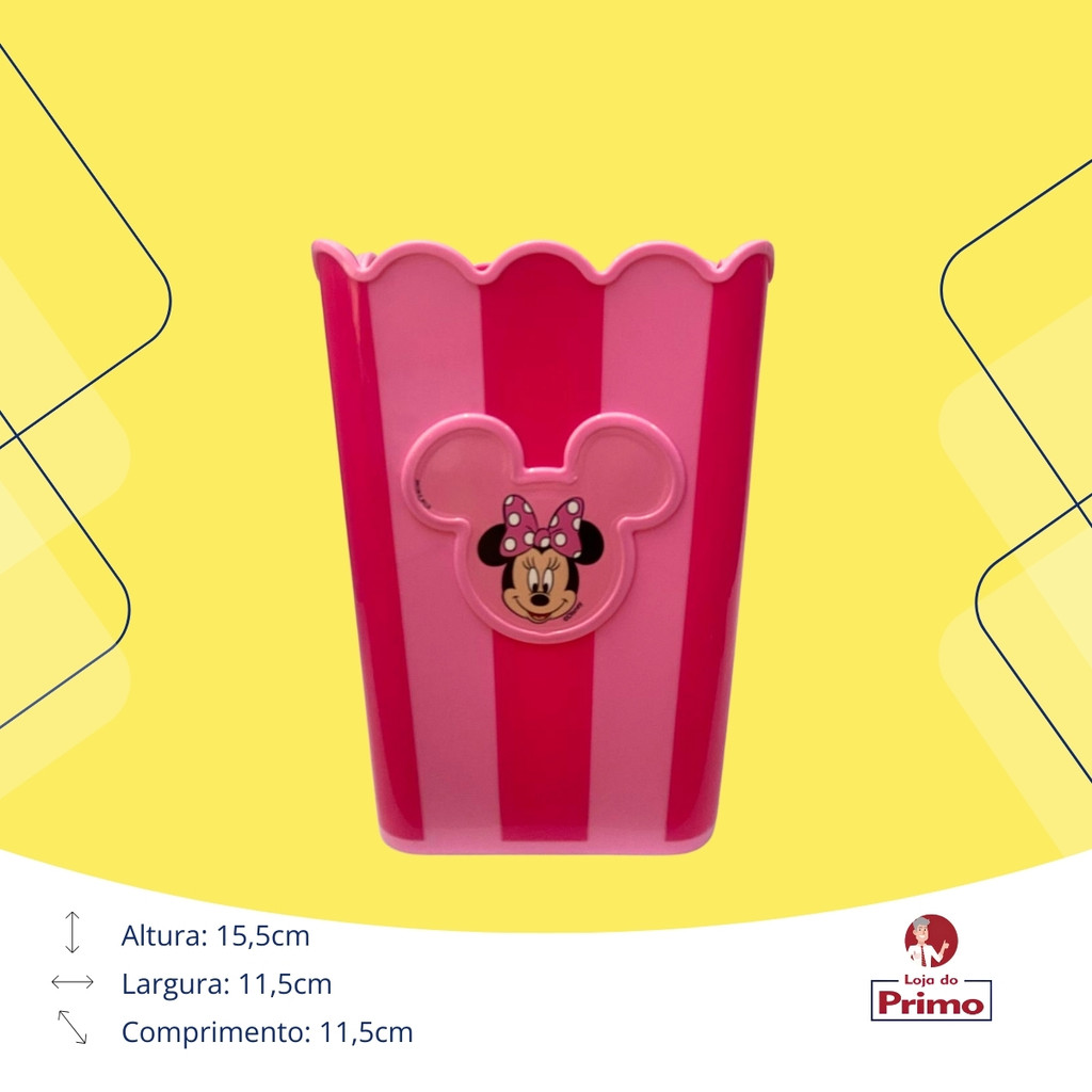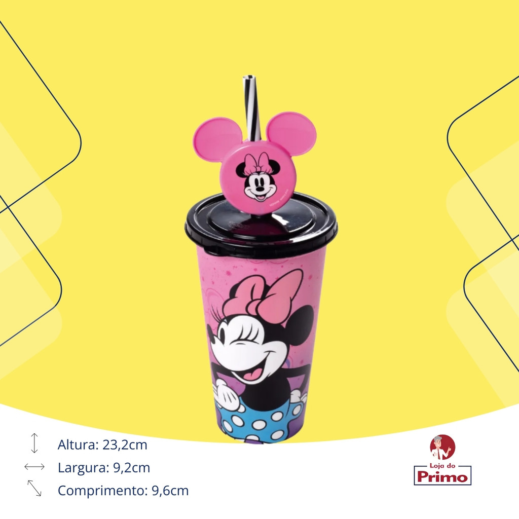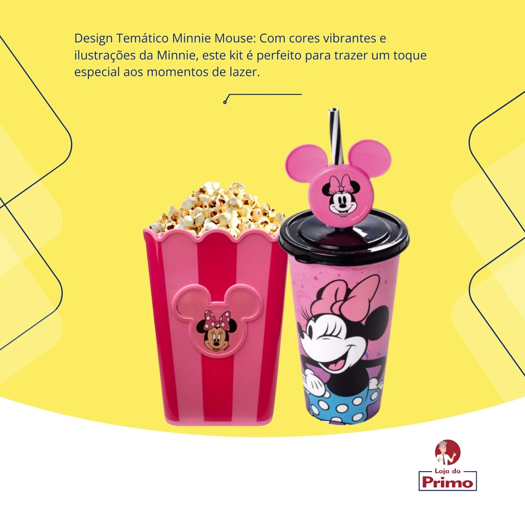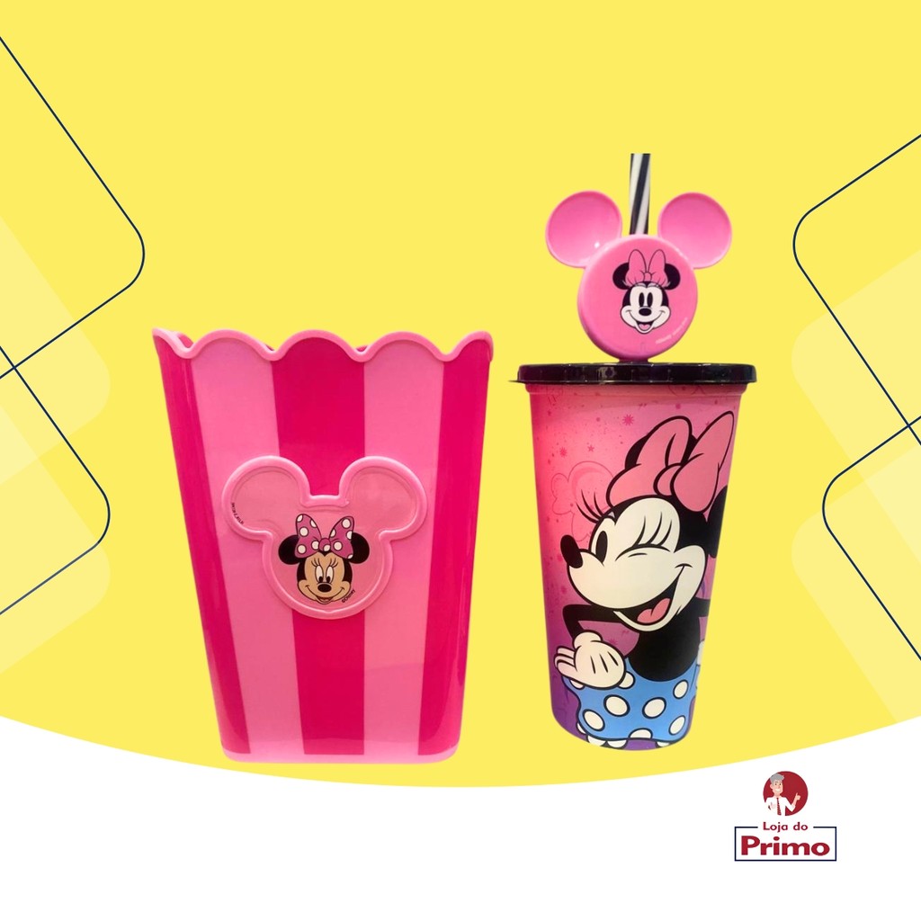 Kit Pipoca Cinema Minnie Balde Pipoca + Copo Refrigerante Suco Água 500ml Rosa Plasútil