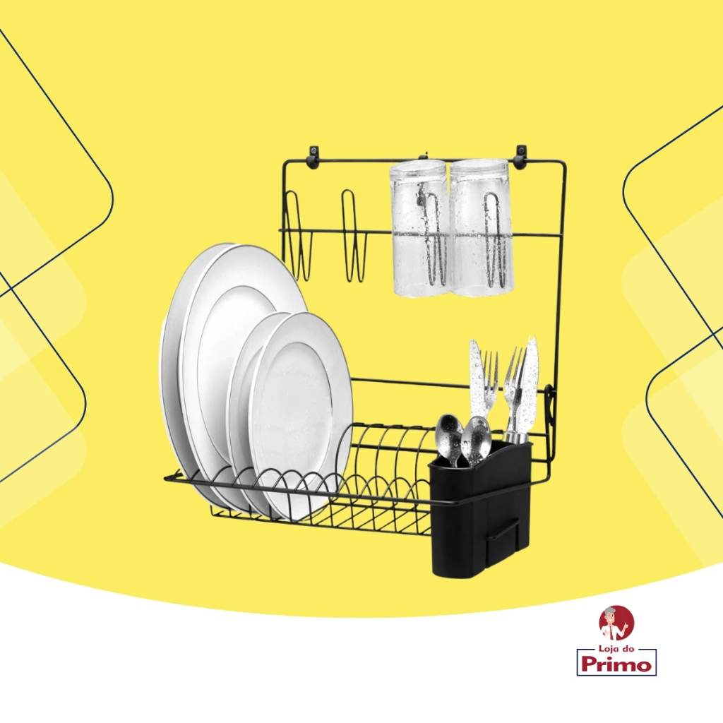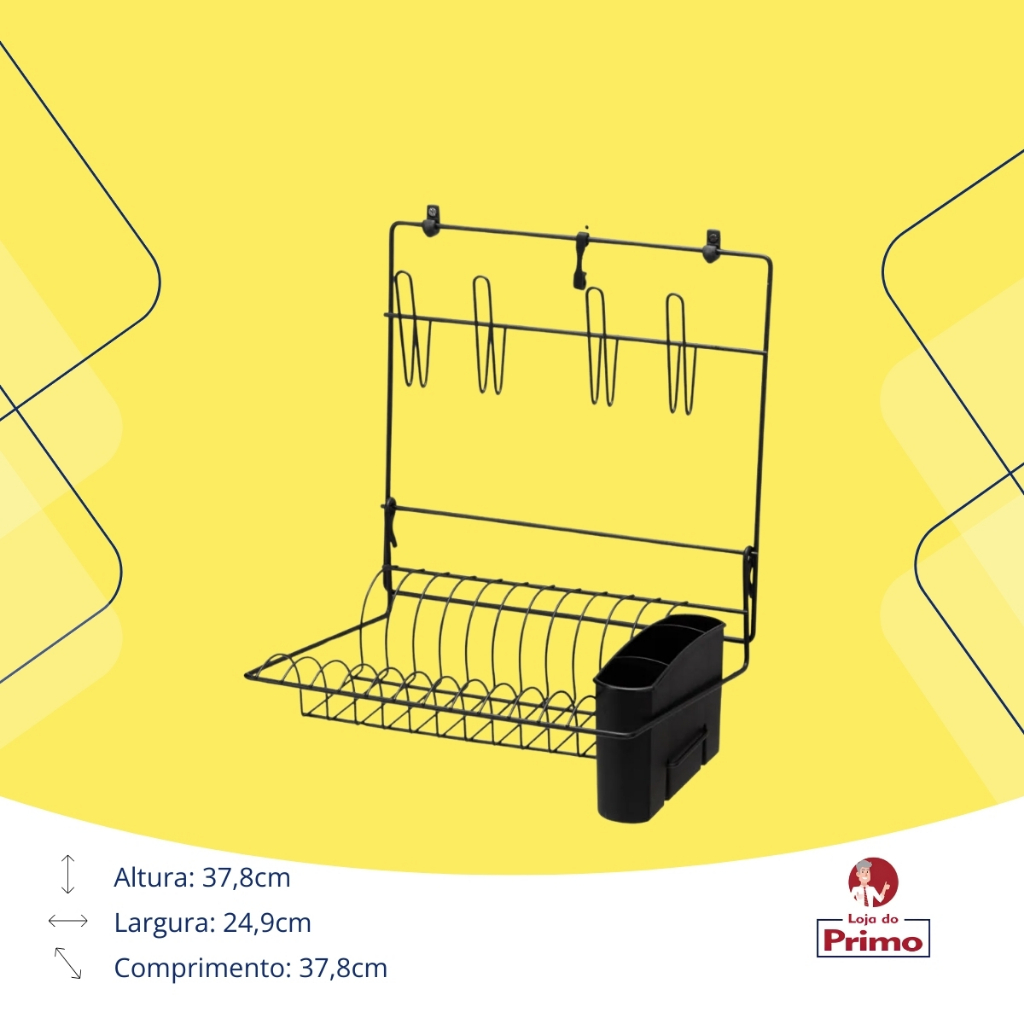 Escorredor Suspenso Dobrável Arthi Preto Para Pratos Copos Parede Cook Home Não Enferruja