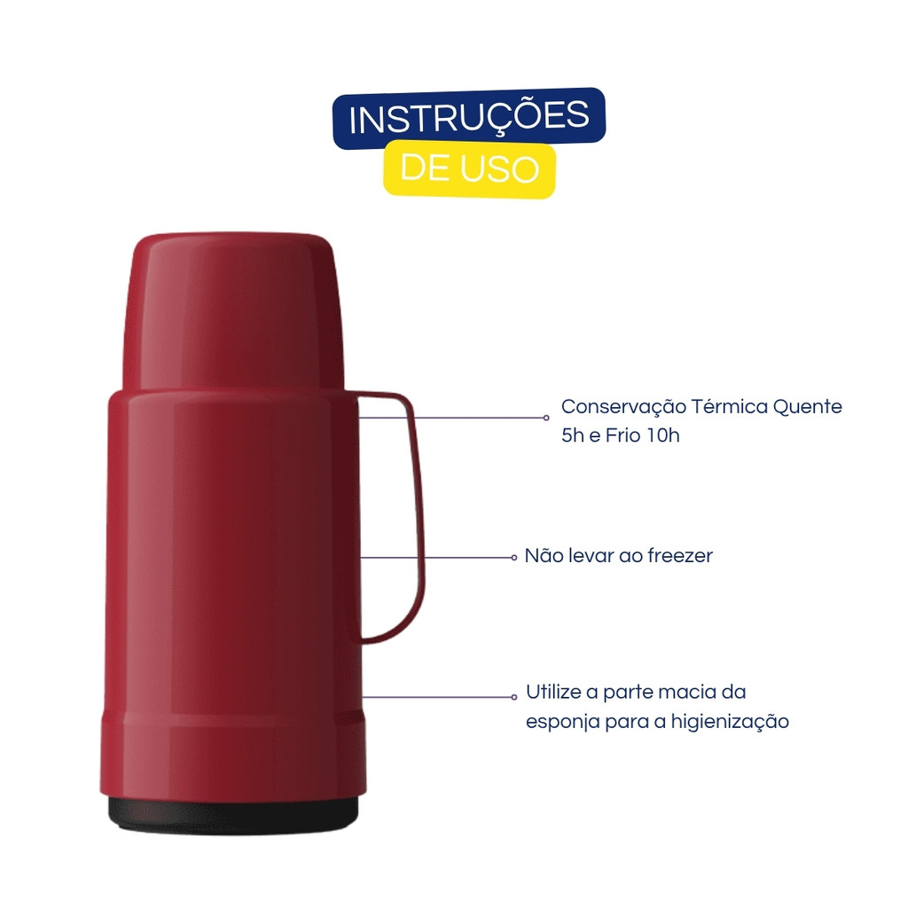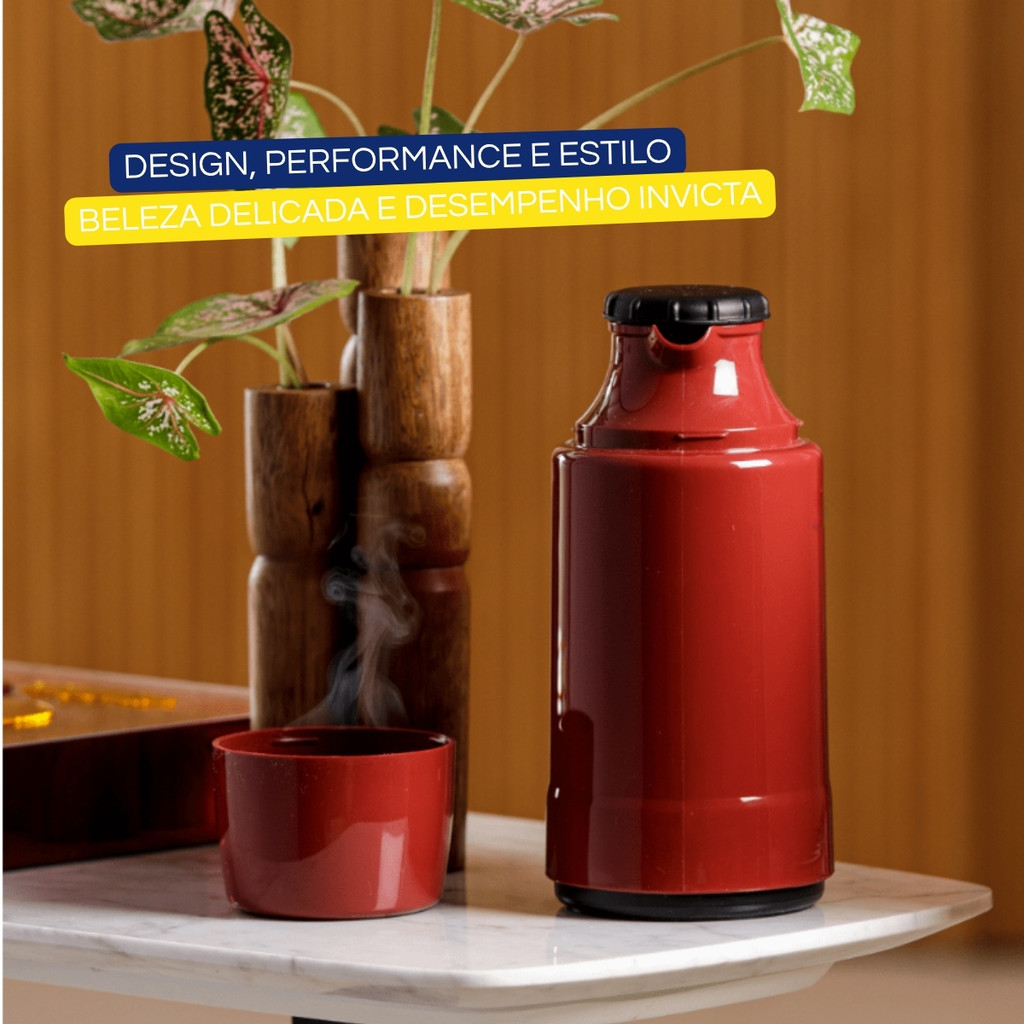 Garrafa Térmica Para Café Chá Leite 1litro C/ Tampa Rolha Vermelho Intenso Invicta
