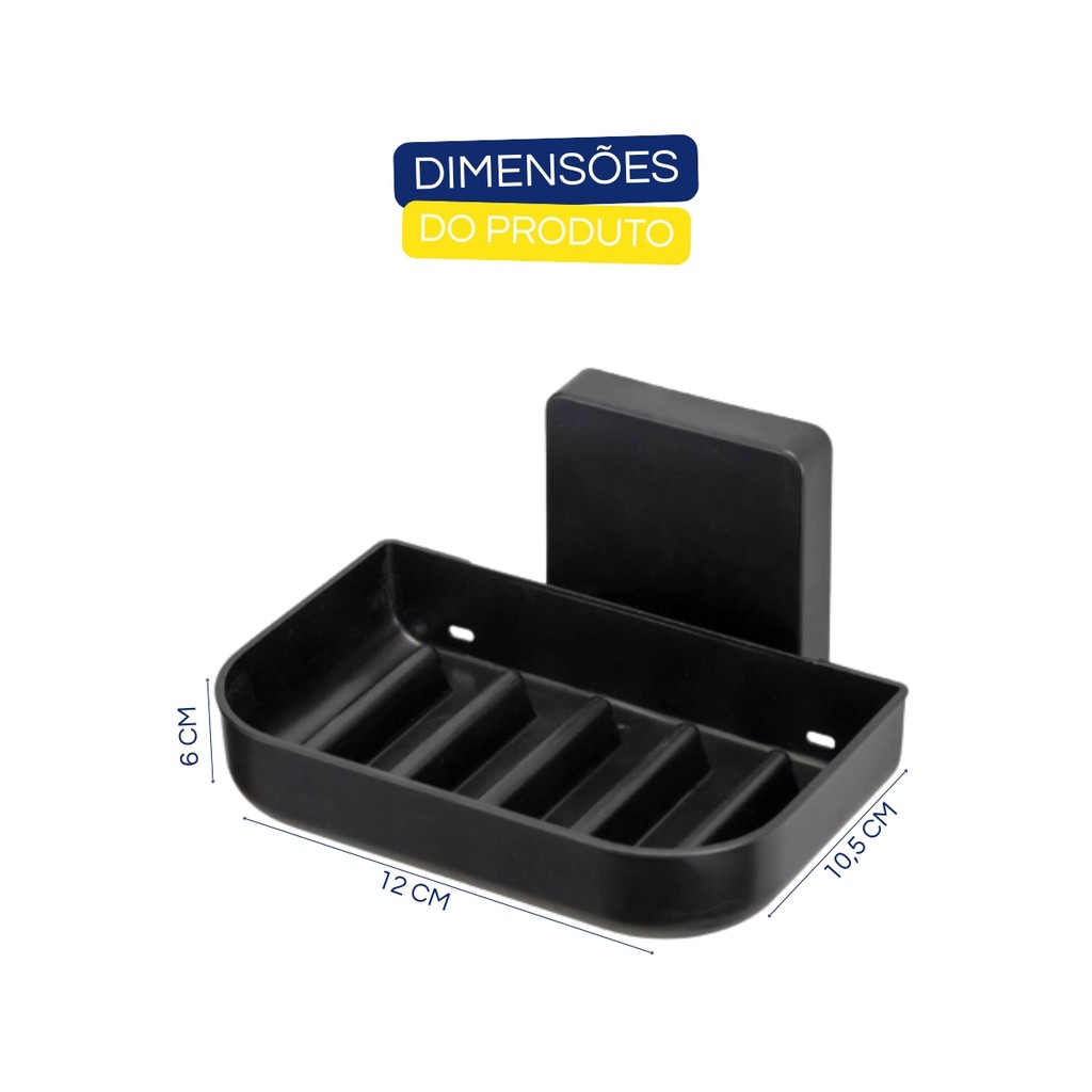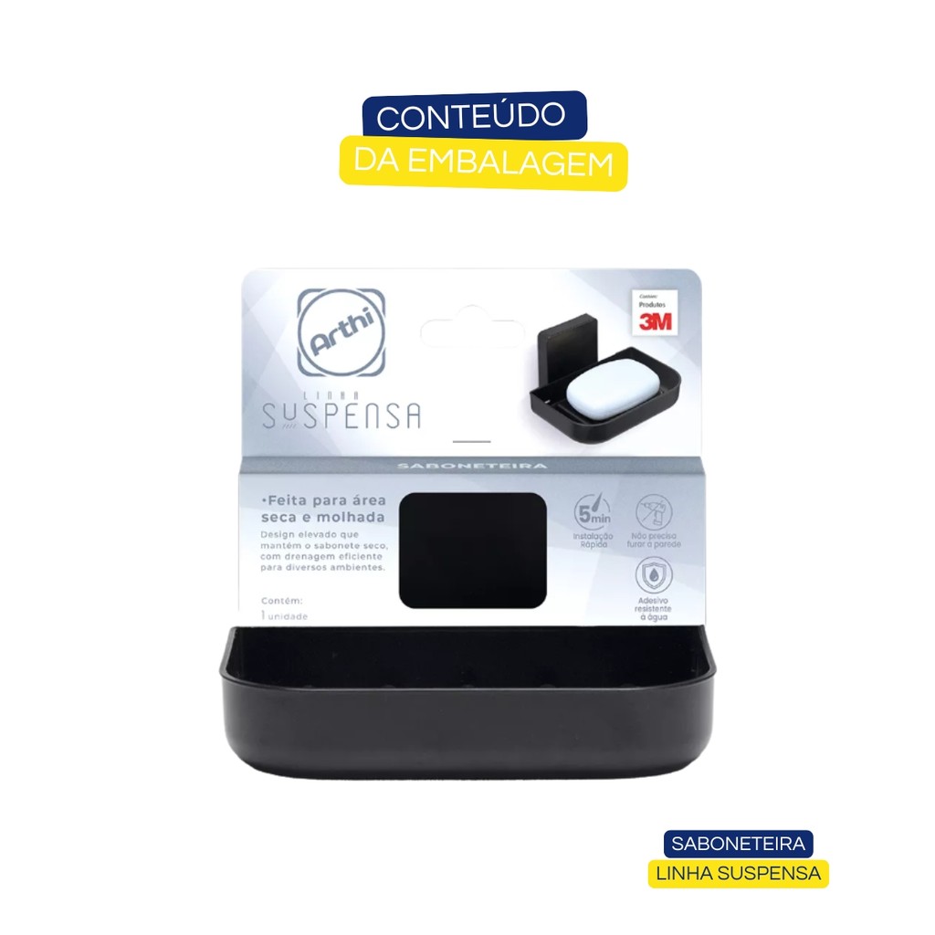 Saboneteira Para Banheiro Lavabo Linha Suspensa Com Adesivo 3M Cor Preto Arthi