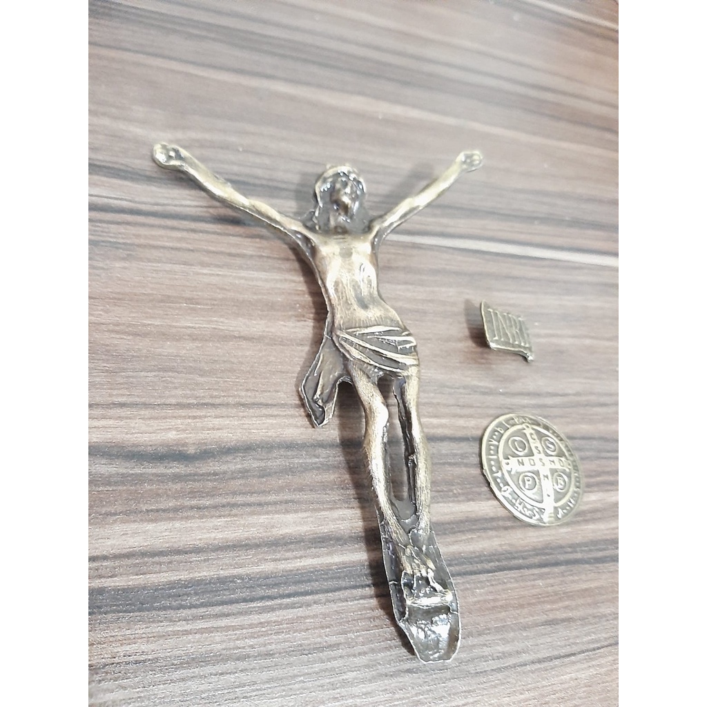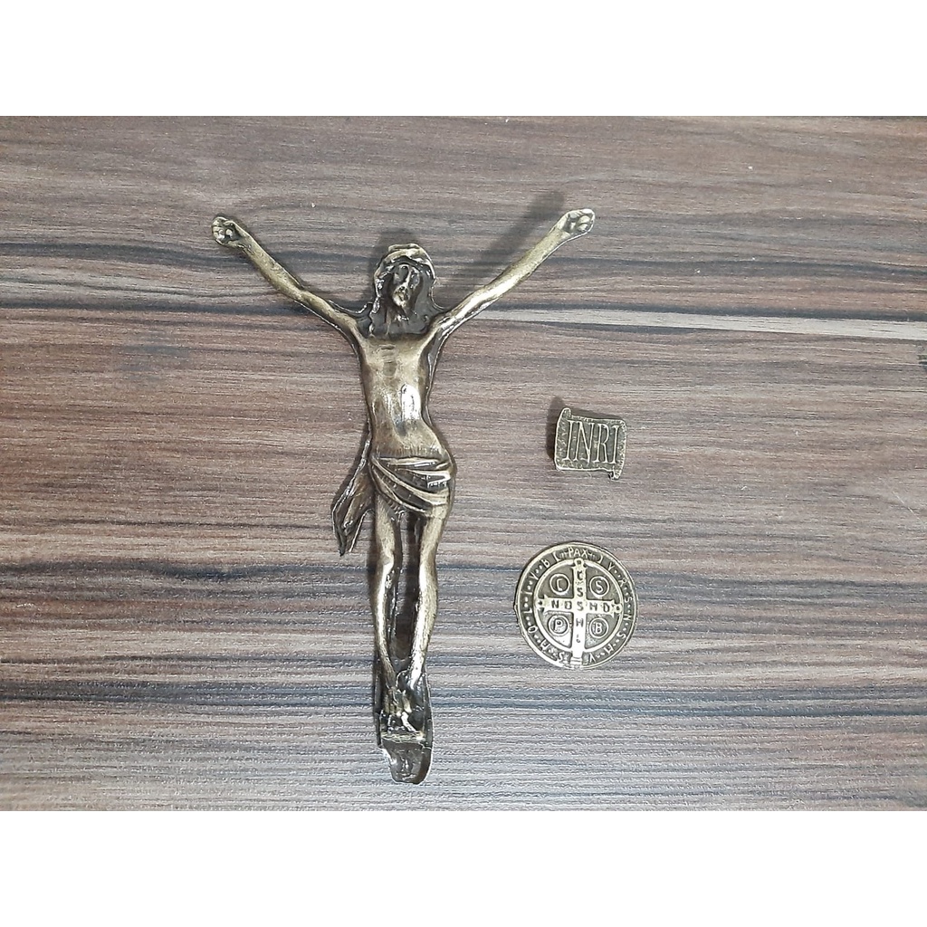 Kit Bronze para Cruz e Crucifixo - Jesus INRI e Medalha São Bento