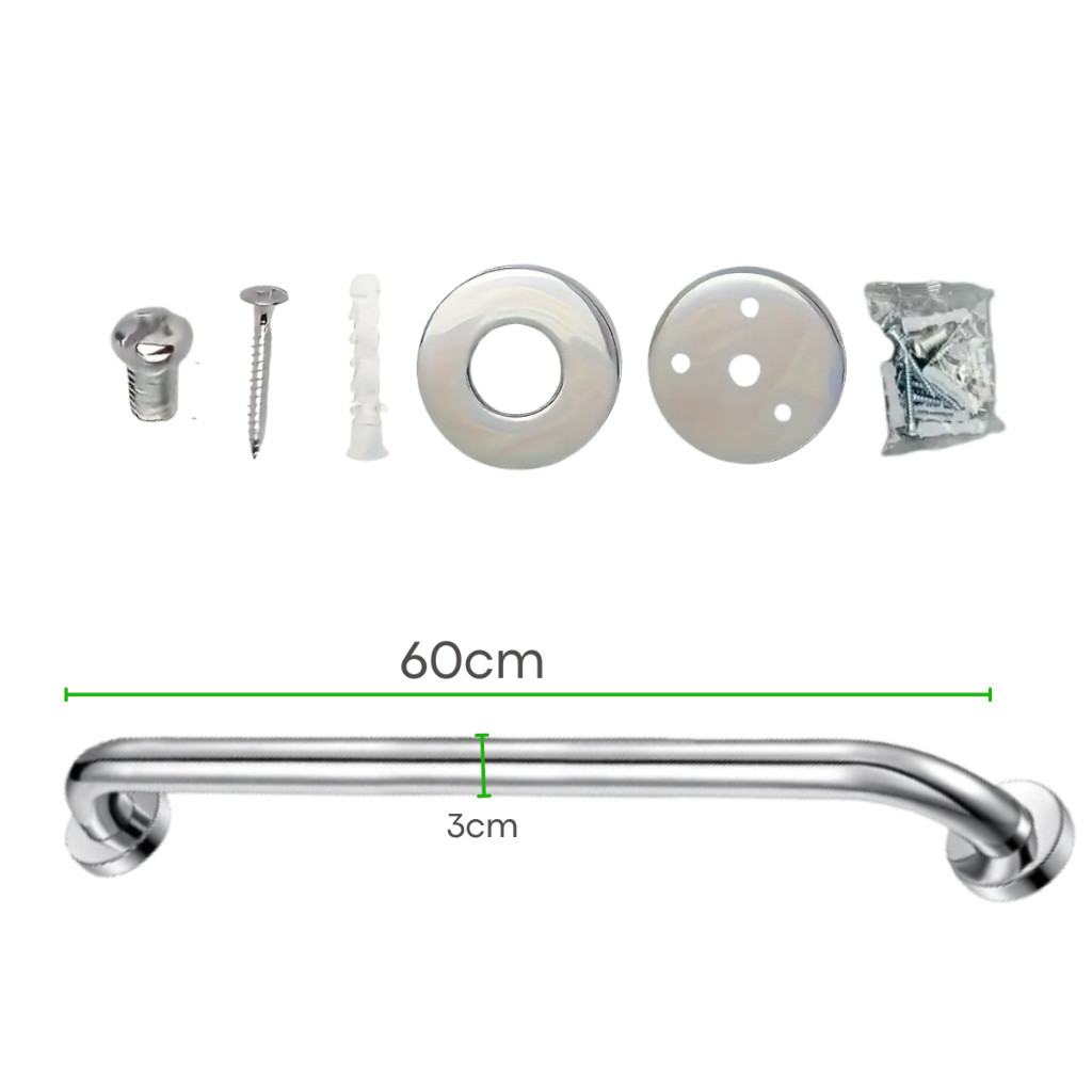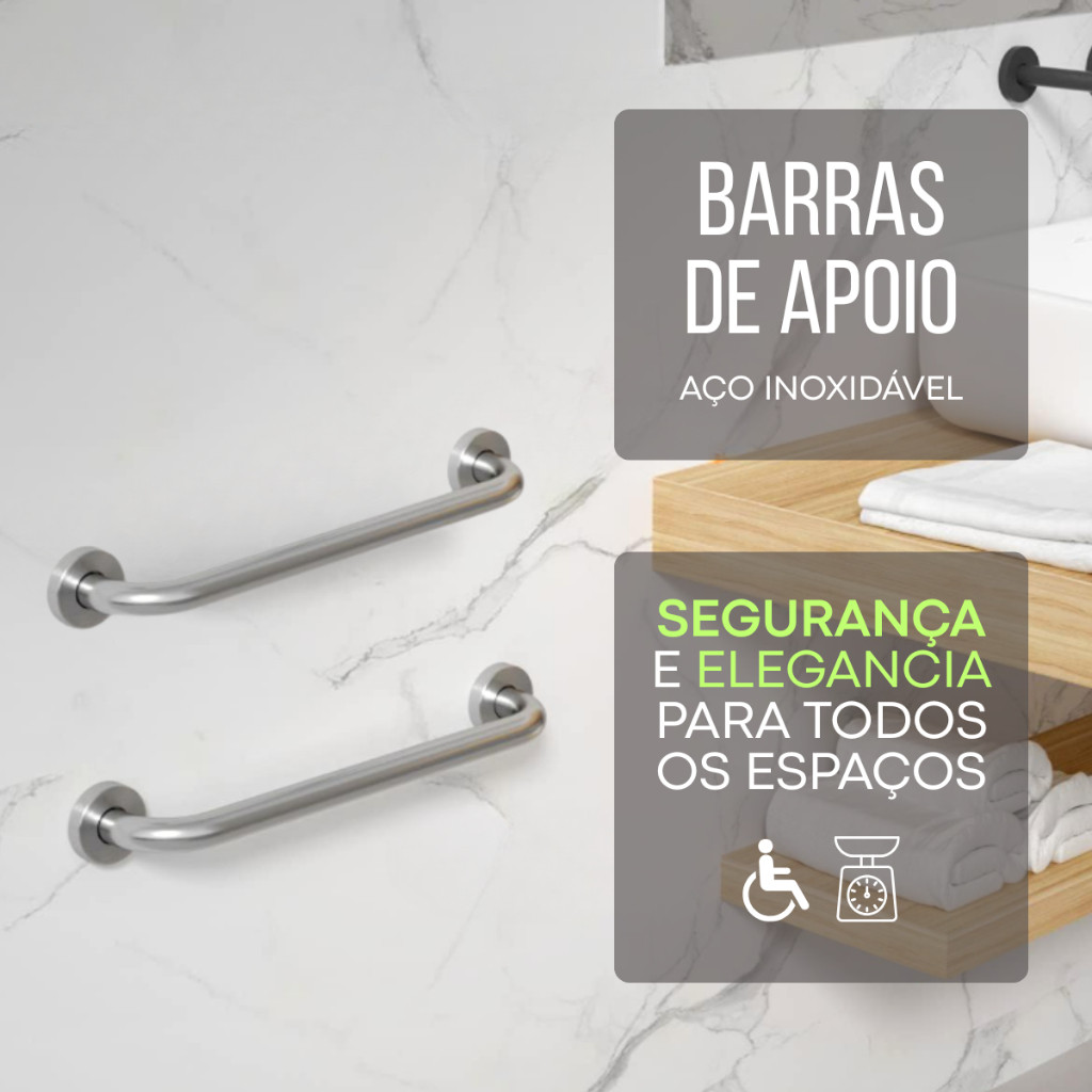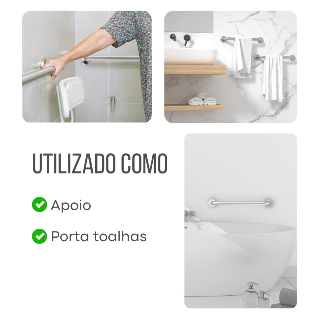 Barra De Apoio Aço Inox Kit 2un Suporte Para Idoso Banheiro 60cm