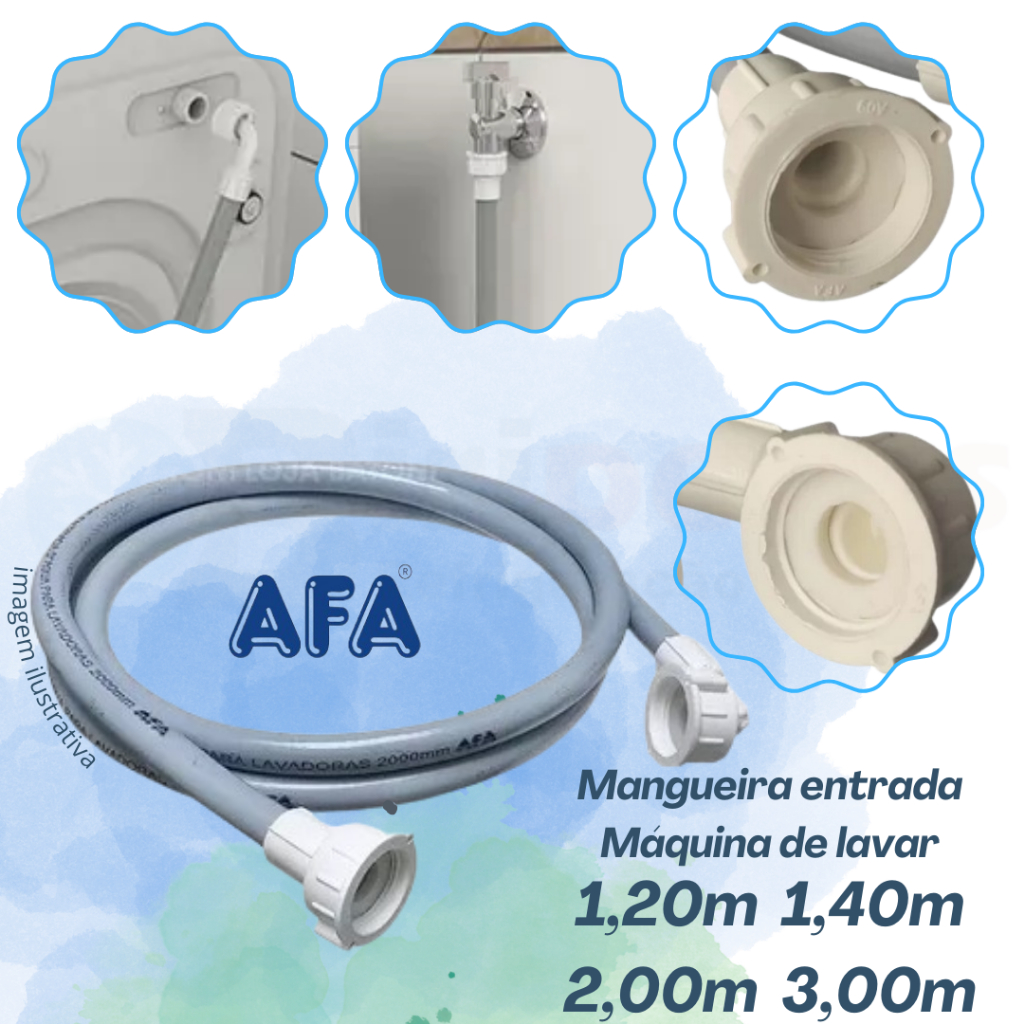 Mangueira Universal de Entrada para Máquina de lavar AFA 1,20M 1,40M 2,00M 3,00M