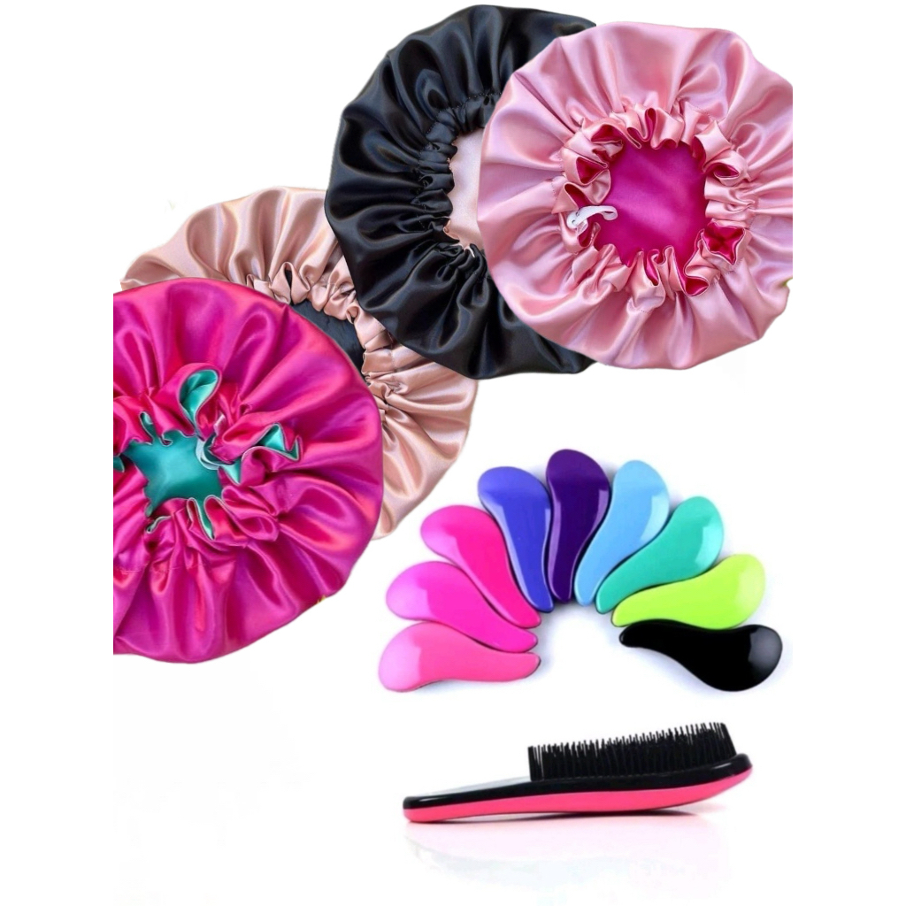 Touca de Cetim Dupla Face Ajustável + Escova Magica