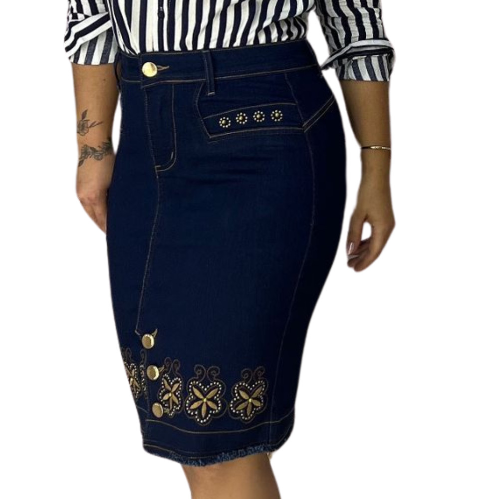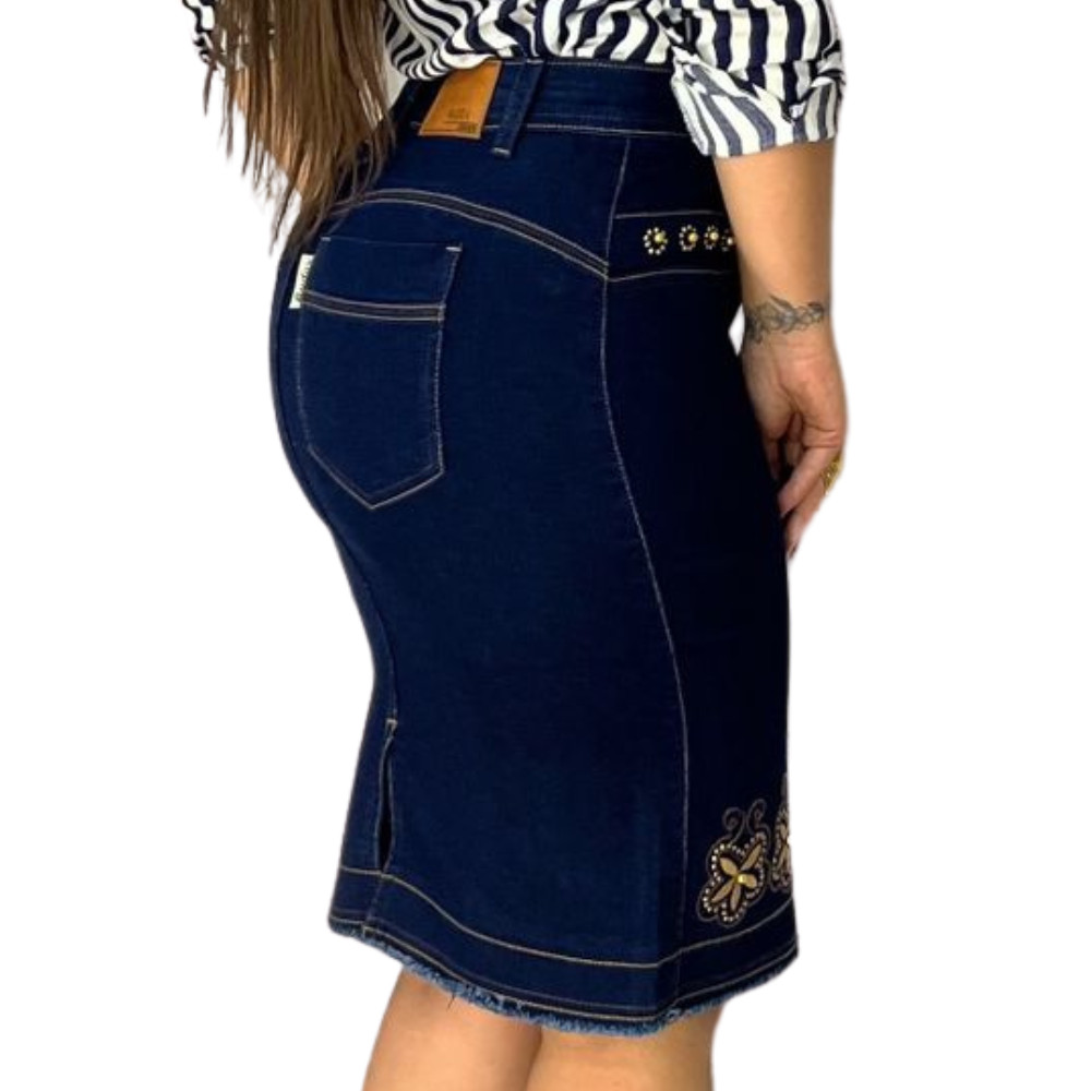 SAIA JEANS EVANGÉLICA CINTURA ALTA COM LYCRA ESCURA BORDADO STRASS ELEGANTE, CONFORTÁVEL, MODESTA, DIVERSAS OCASIÕES.