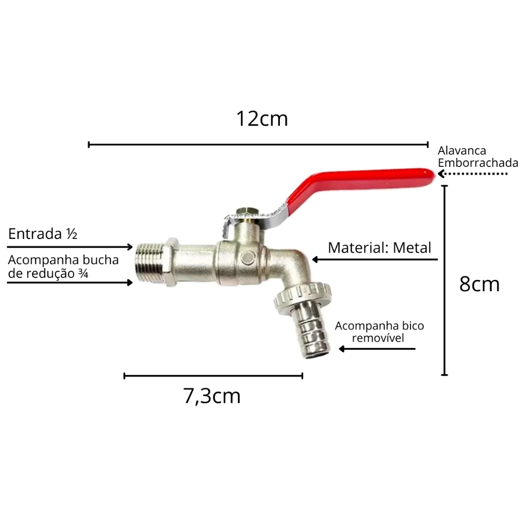 Torneira Esfera Jardim Quintal Tanque 1/2 x 3/4 Metalica 1/4 volta.