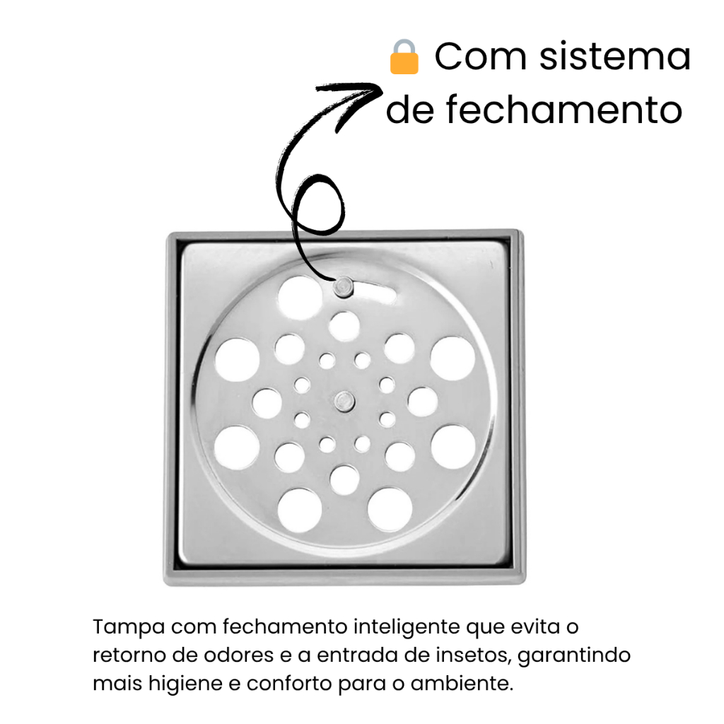 Ralo Grelha Inox 10x10 CM para Banheiro Lavabo Área Externa Quadrado com Caixilho - Com Fechamento