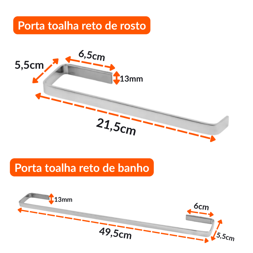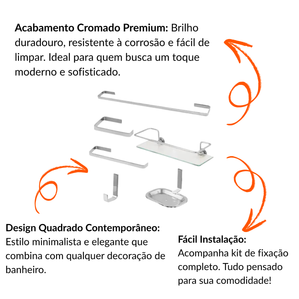 Kit Acessórios Para Banheiro Quadrado Alumino + Porta Shampoo Reto