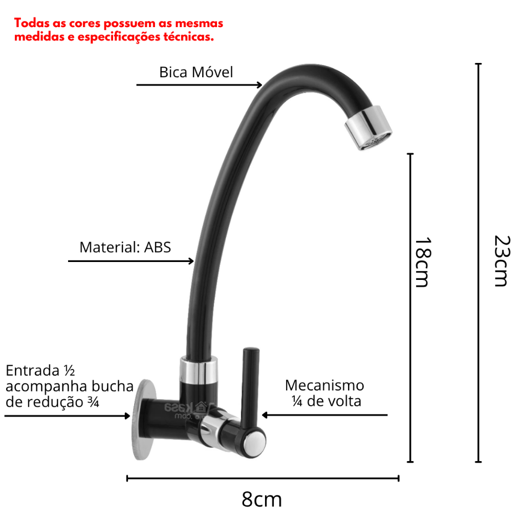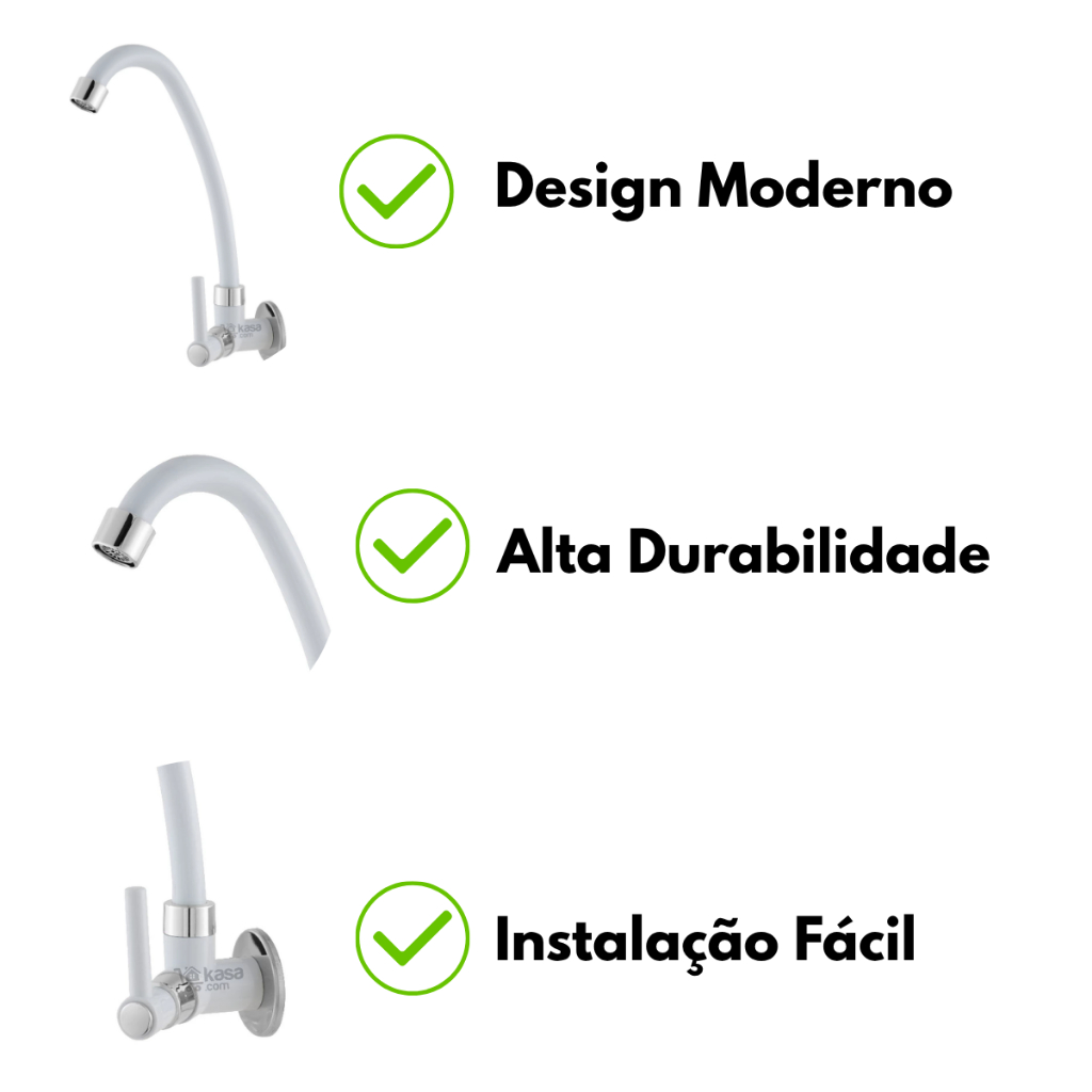 Torneira Pia Cozinha de Parede Preta ou Branca ABS 1/4 de Volta 167