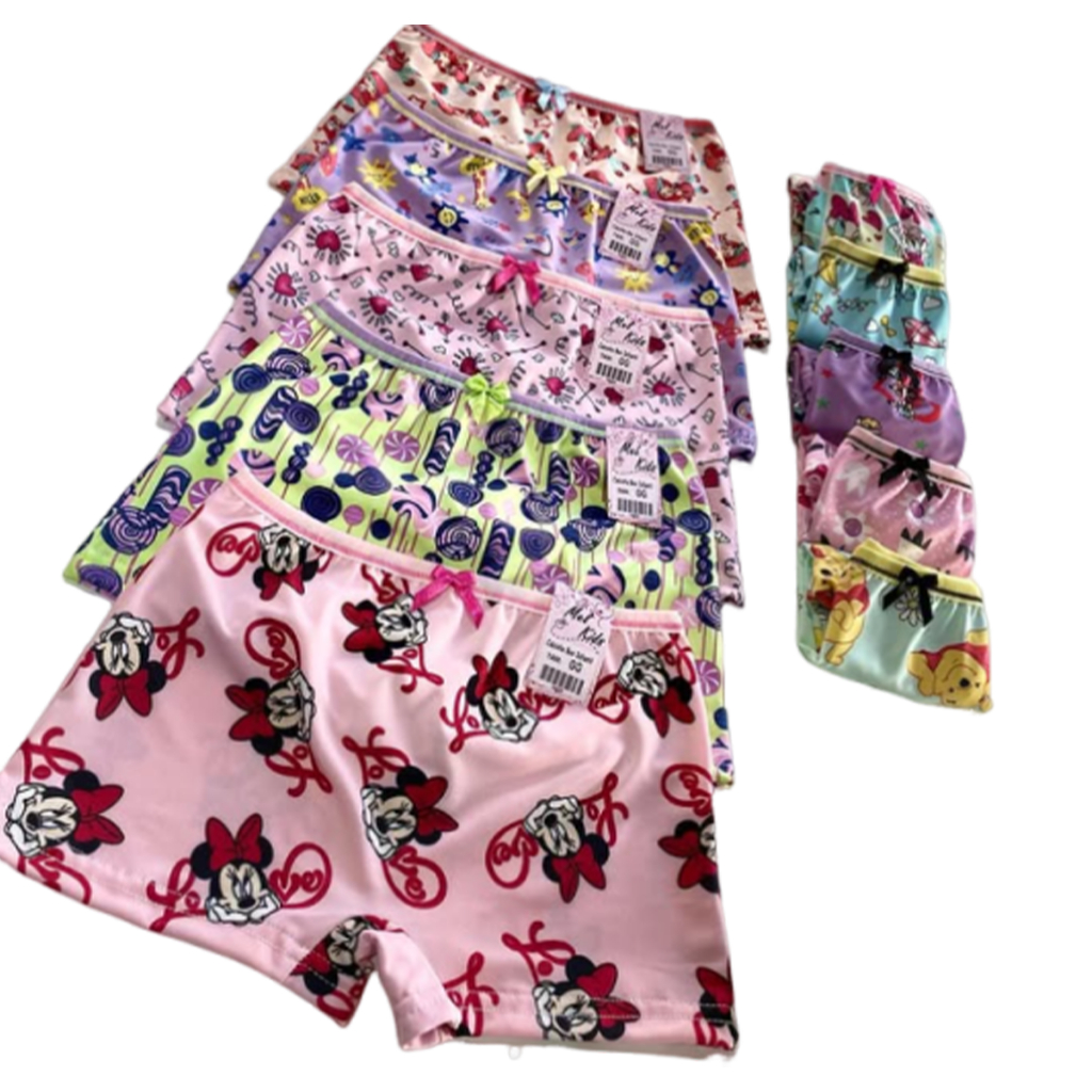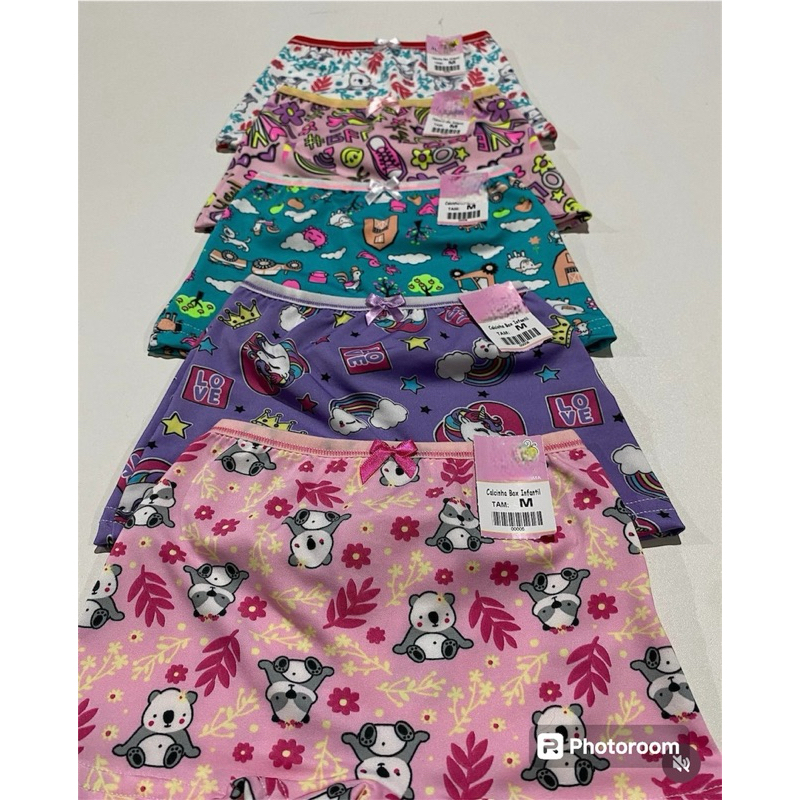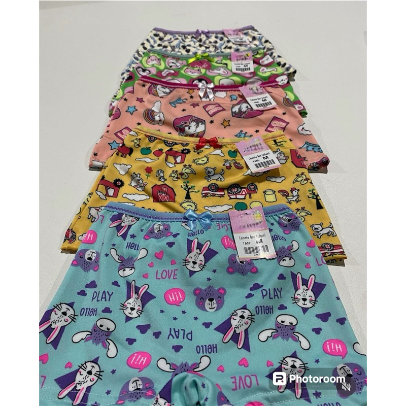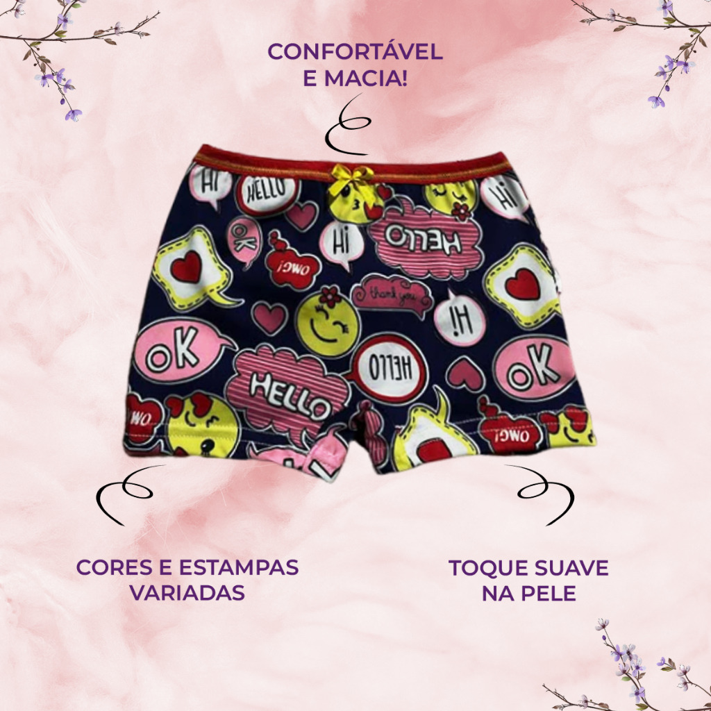 Kit 10 Calcinha Box Boxer Shortinho Infantil Menina de Microfibra Estampado