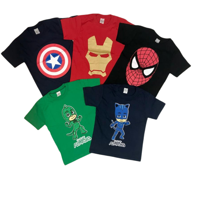 Kit 05 Camisetas Infantil 100% Algodão 30.1 Personagens Super Heróis Criança Camisa Blusa