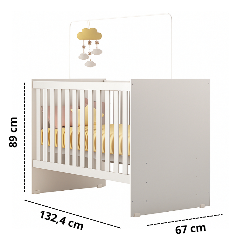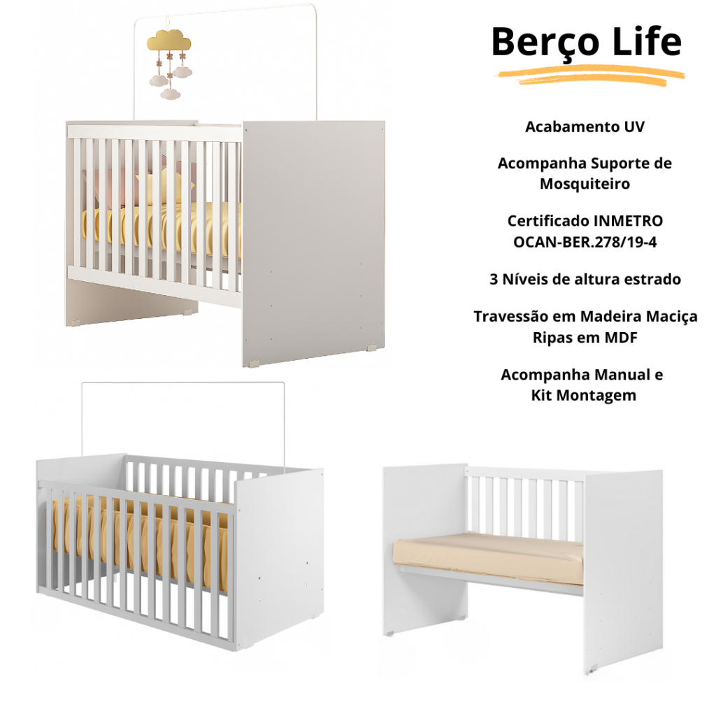 Mini Berço Life para Bebê 100% MDF com Grades de Segurança Rodízios e 3 Níveis de Altura