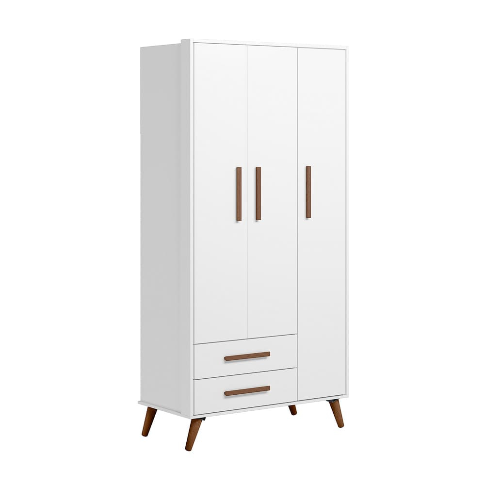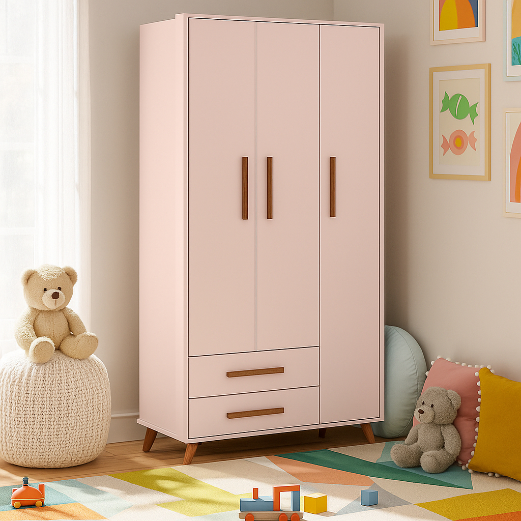 Guarda Roupa Infantil Retrô 3 Portas 2 Gavetas com Pés Palito em Madeira Multiuso para Quarto Bebê
